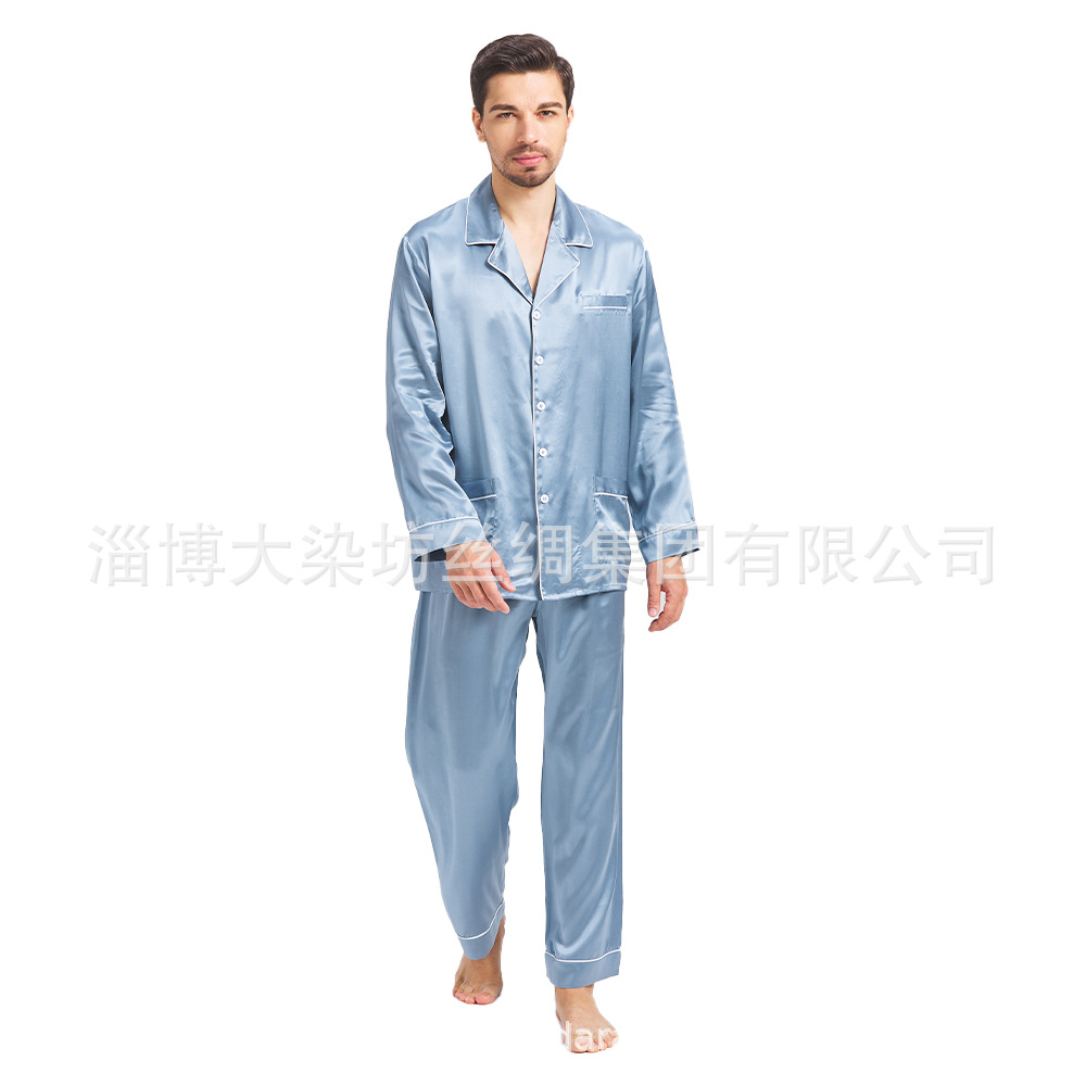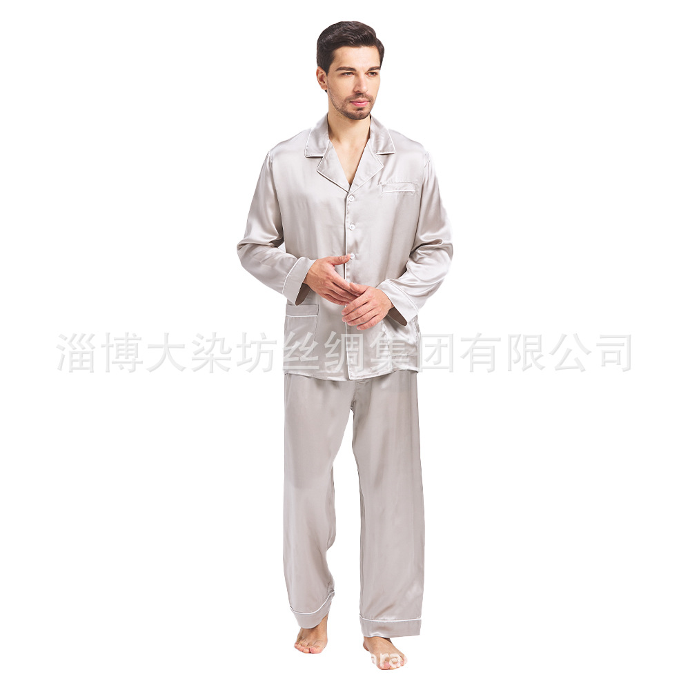 16mm 남성 실크 잠옷, 뽕나무 실크 남성 잠옷, 홈웨어 세트, 실크 잠옷 세트