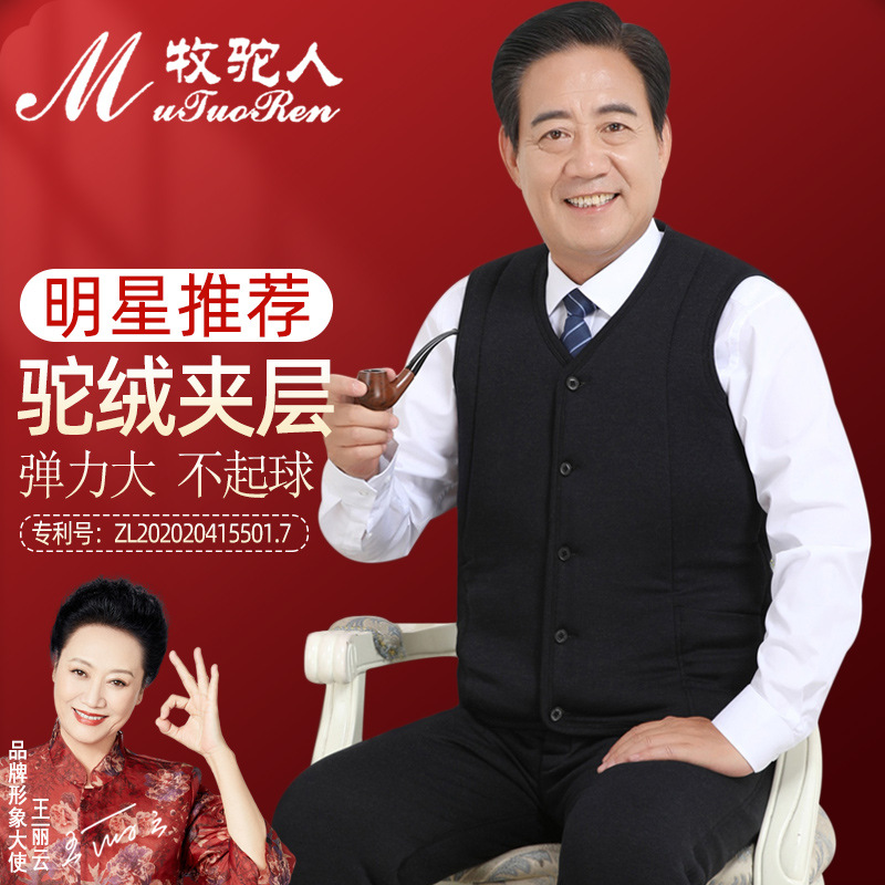 도매 가격 두꺼운 카멜 양복 조끼 면 조끼 남자의 할아버지 야외 방한 조끼 중년 및 노인 아빠