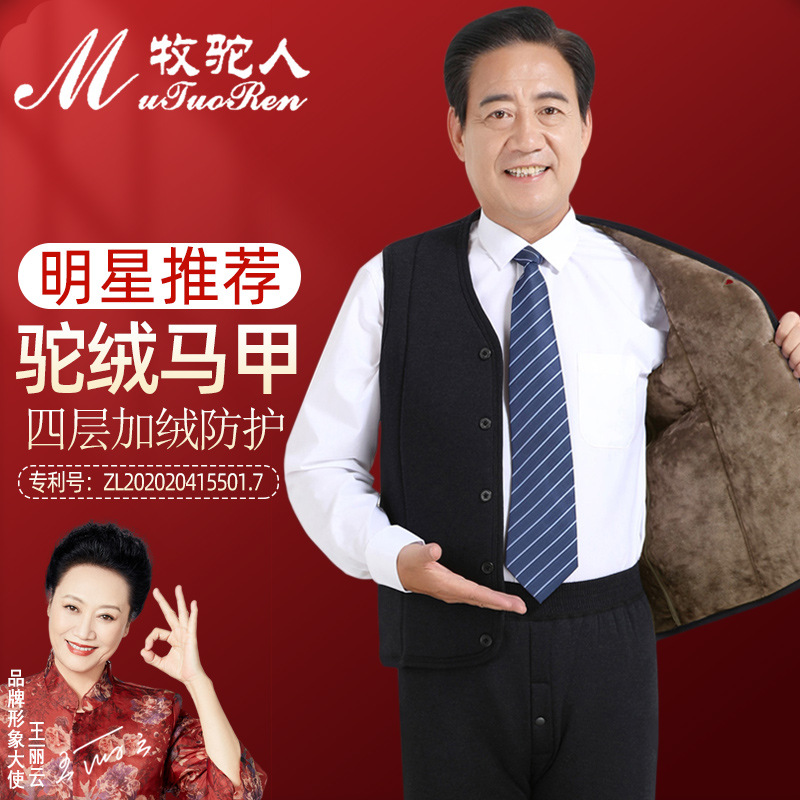 도매 가격 두꺼운 카멜 양복 조끼 면 조끼 남자의 할아버지 야외 방한 조끼 중년 및 노인 아빠스토어 가기