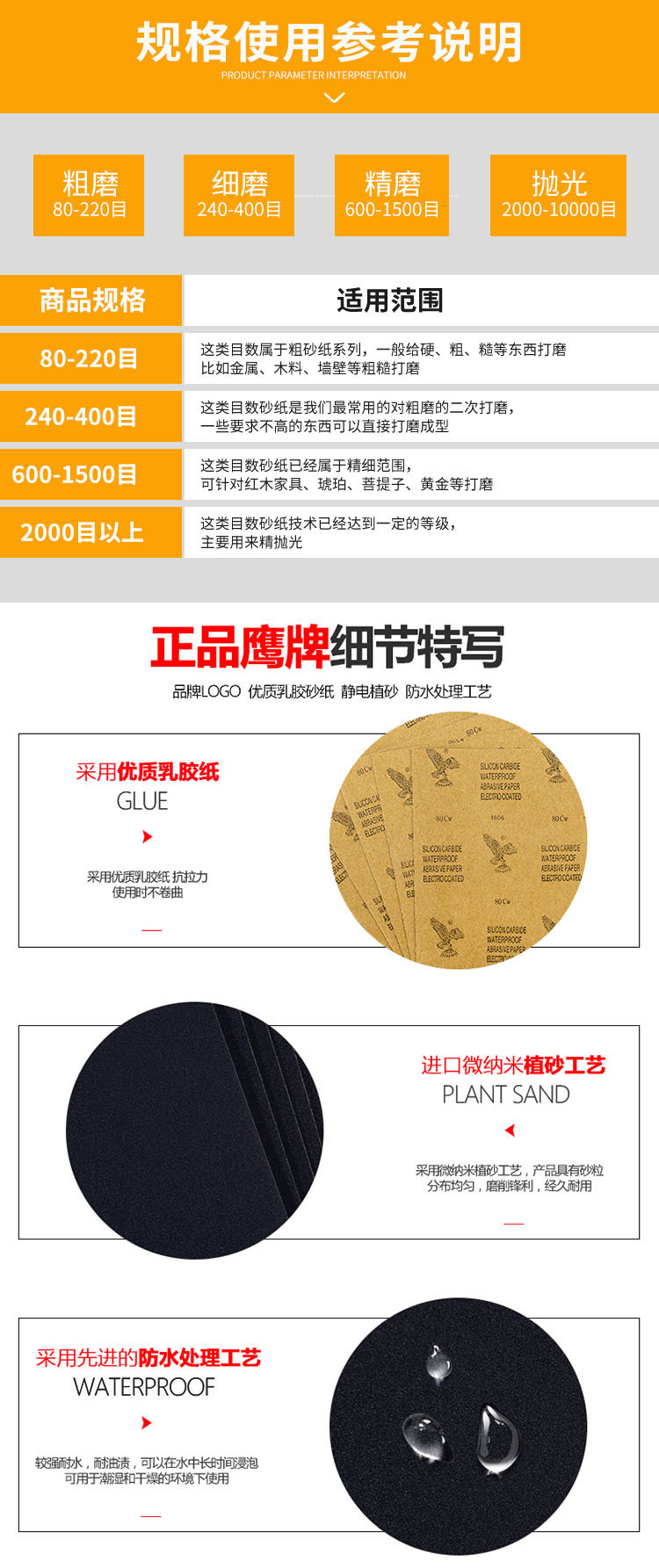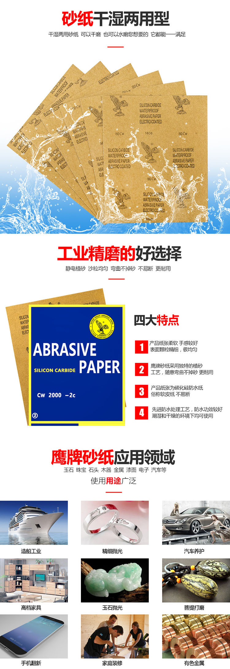 독수리 사포 플라잉 이글 어스 이글 워터 밀 드라이 그라인딩 이중 목적 블랙 실리콘 카바이드 사포 연삭 사포