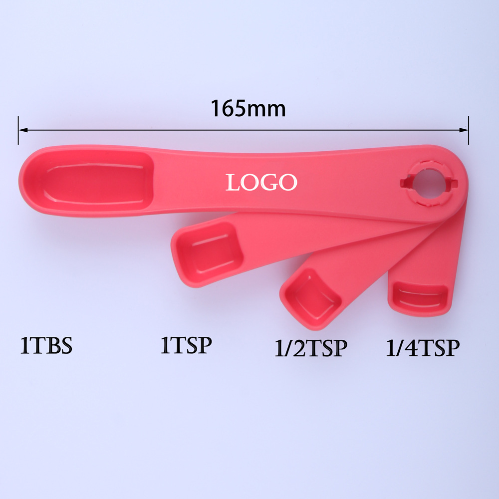 주방 도구 식품 등급 PP 플라스틱 측정 스푼 세트 창조적 인 접이식 4 대 1 측정 숟가락 조합 인쇄 가능한 로고