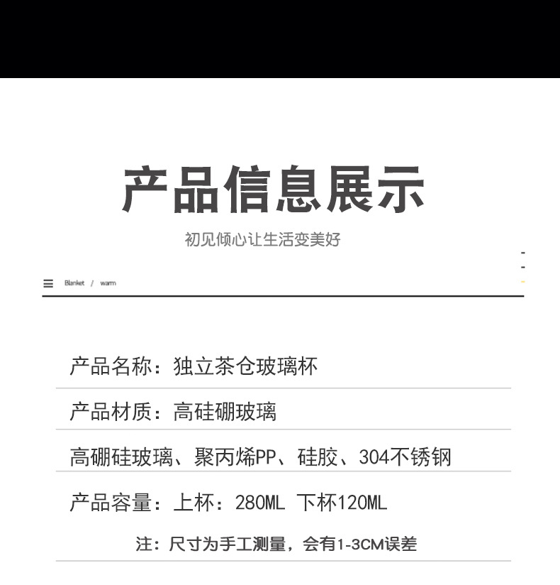 • 【350ml】천겹 바닥 천연 차와 물 분리 찻잔
