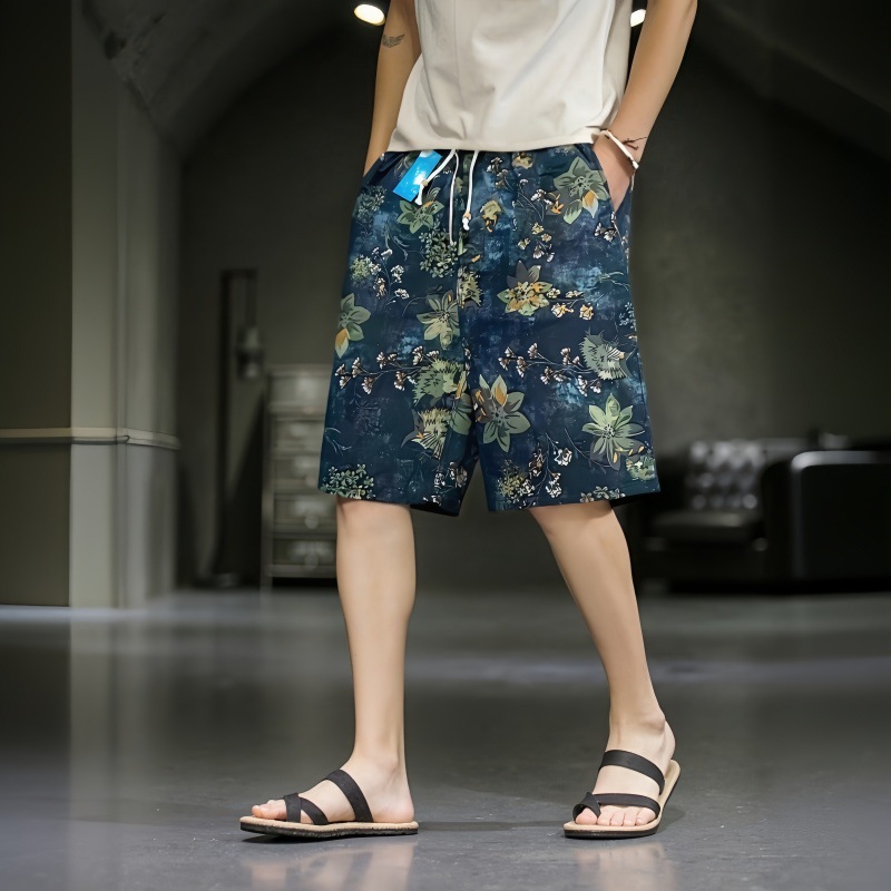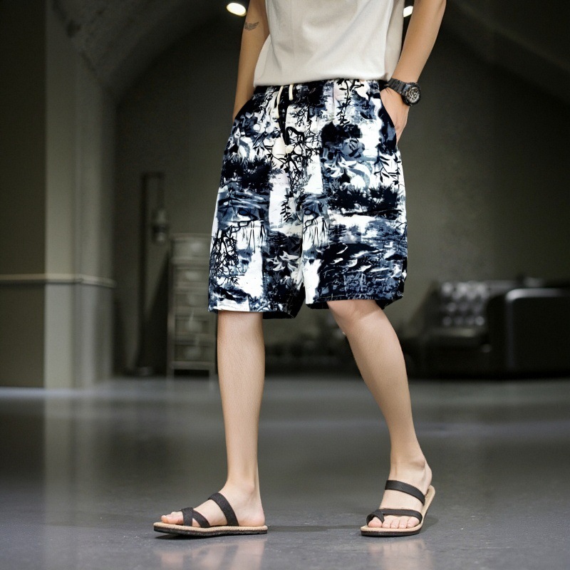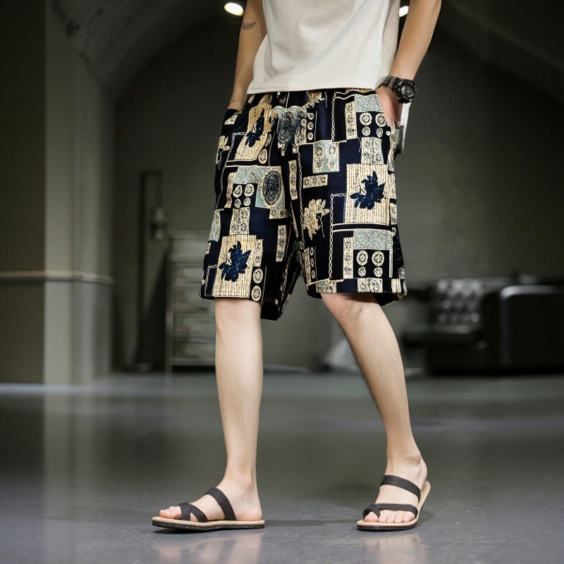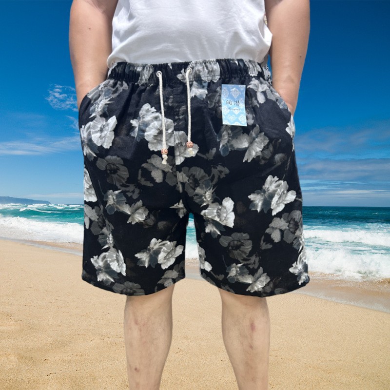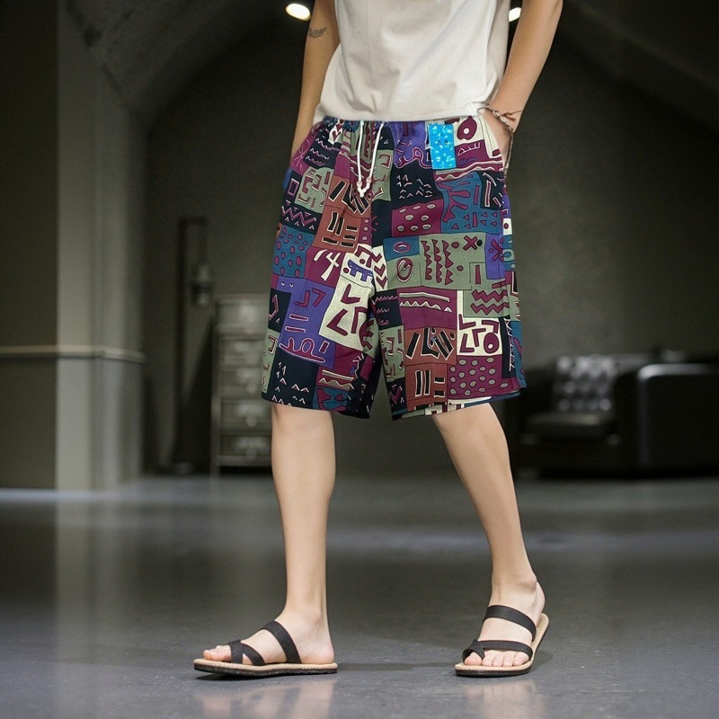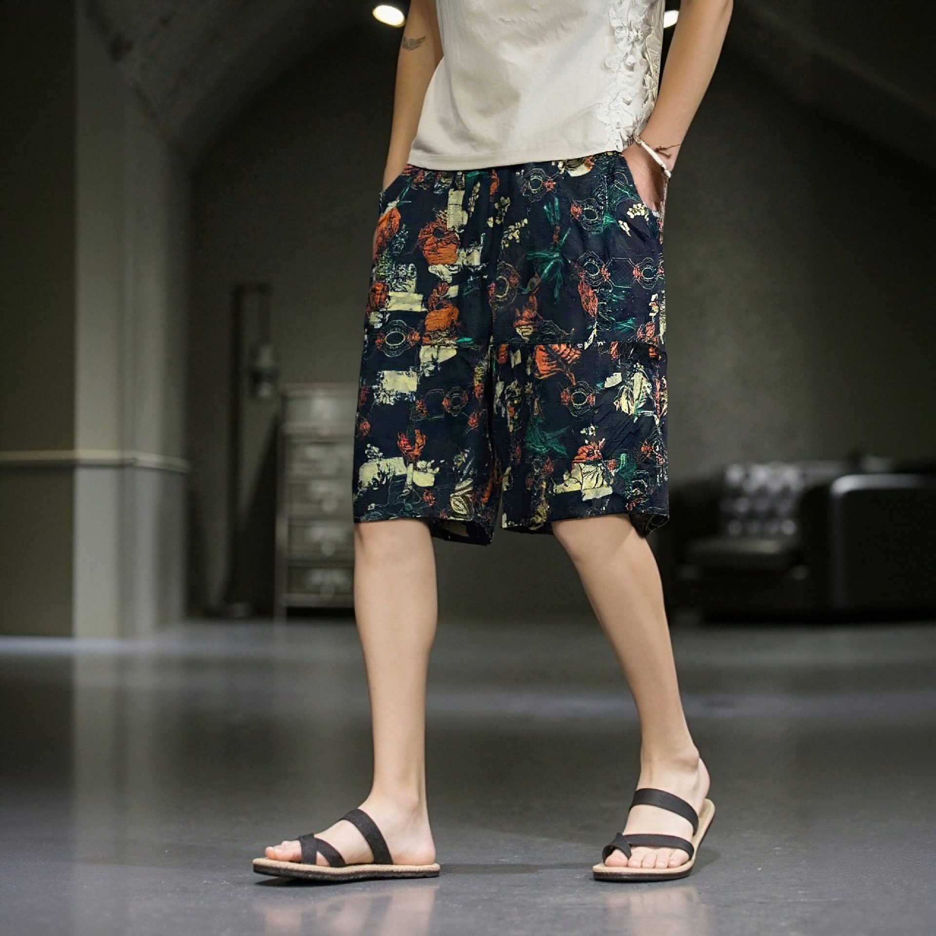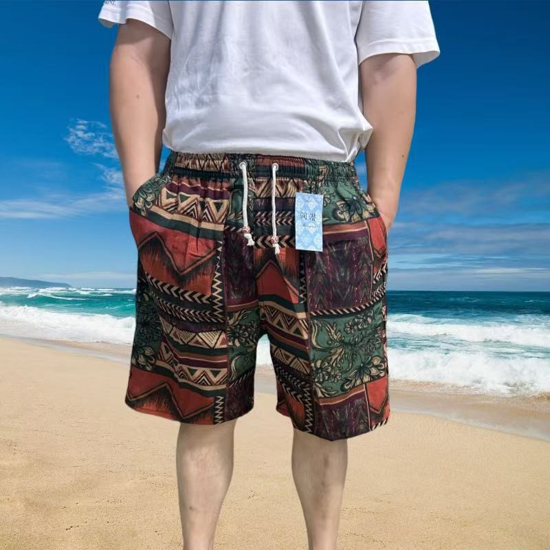 여름 비치 팬츠 남성 스포츠 레저 휴가 빅 팬츠 에스닉 스타일 미드 팬츠 래프팅 속건성 코튼 린넨 남성 꽃무늬 반바지스토어 가기
