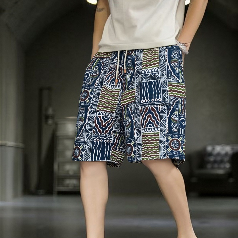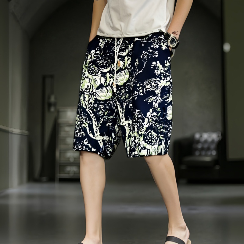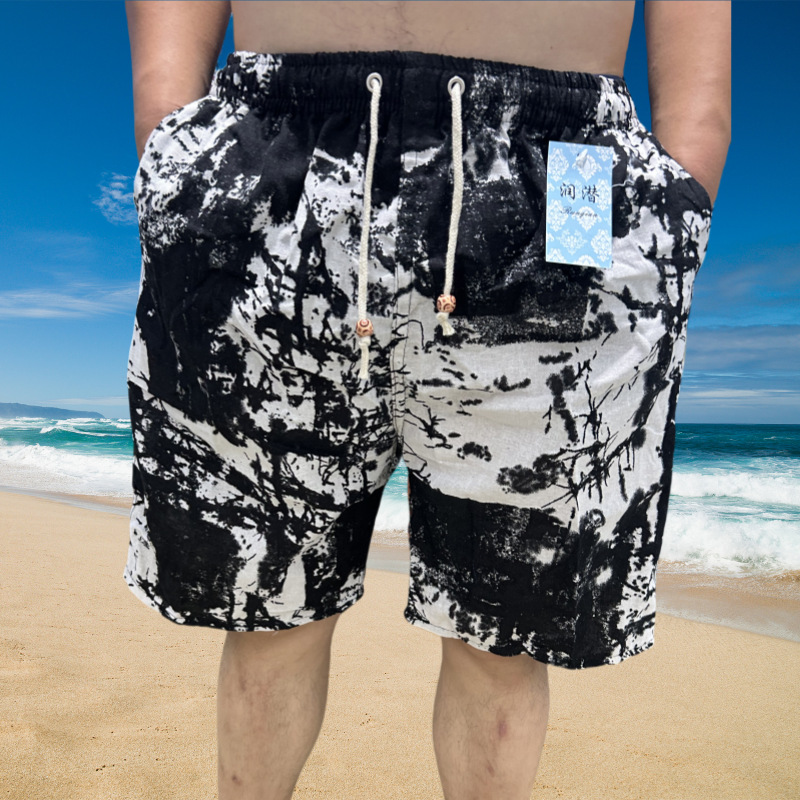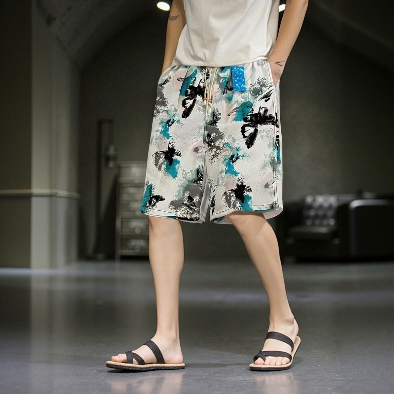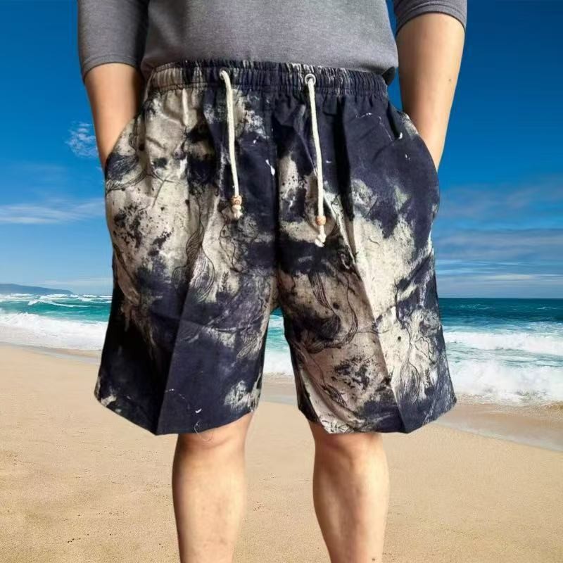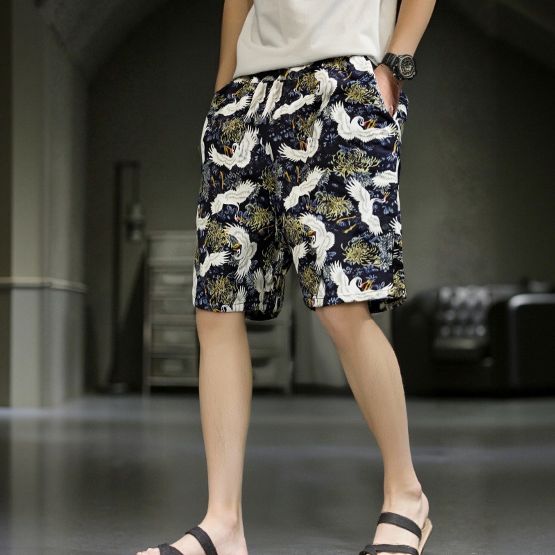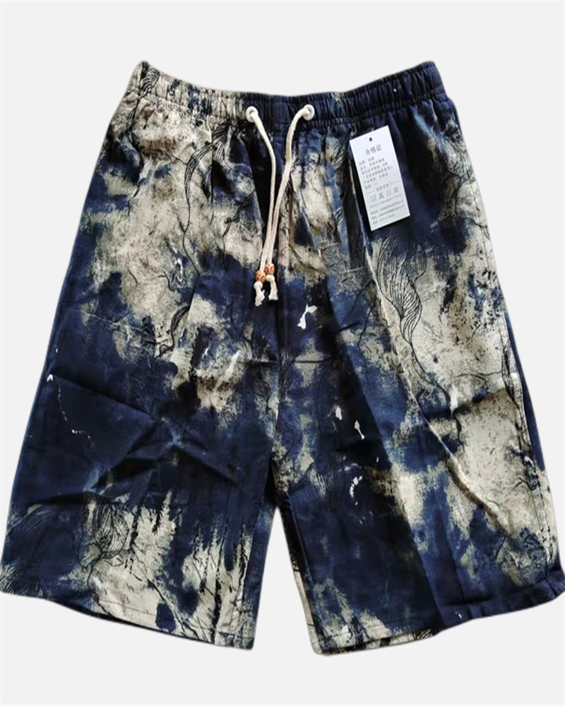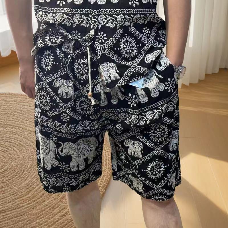여름 비치 팬츠 남성 스포츠 레저 휴가 빅 팬츠 에스닉 스타일 미드 팬츠 래프팅 속건성 코튼 린넨 남성 꽃무늬 반바지스토어 가기