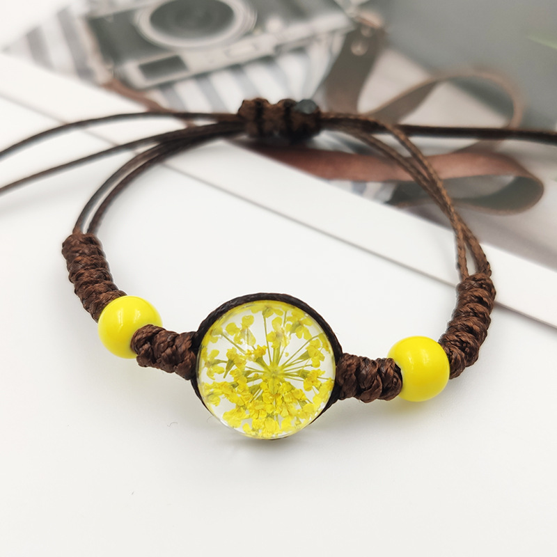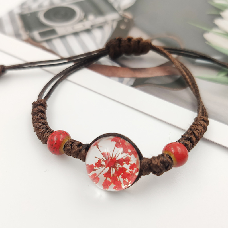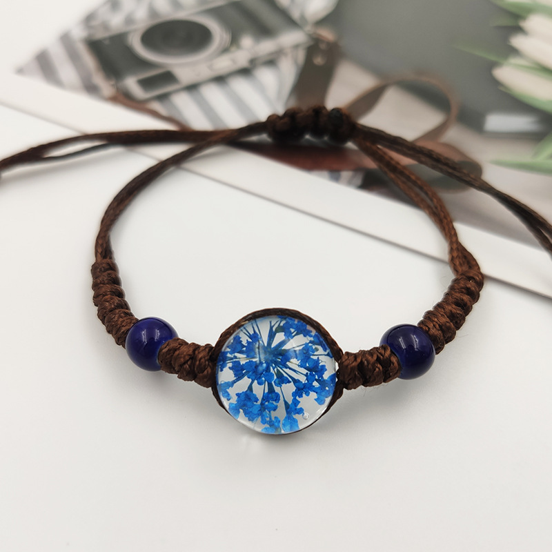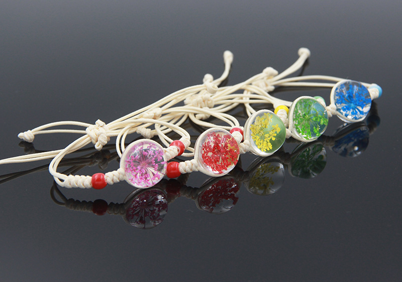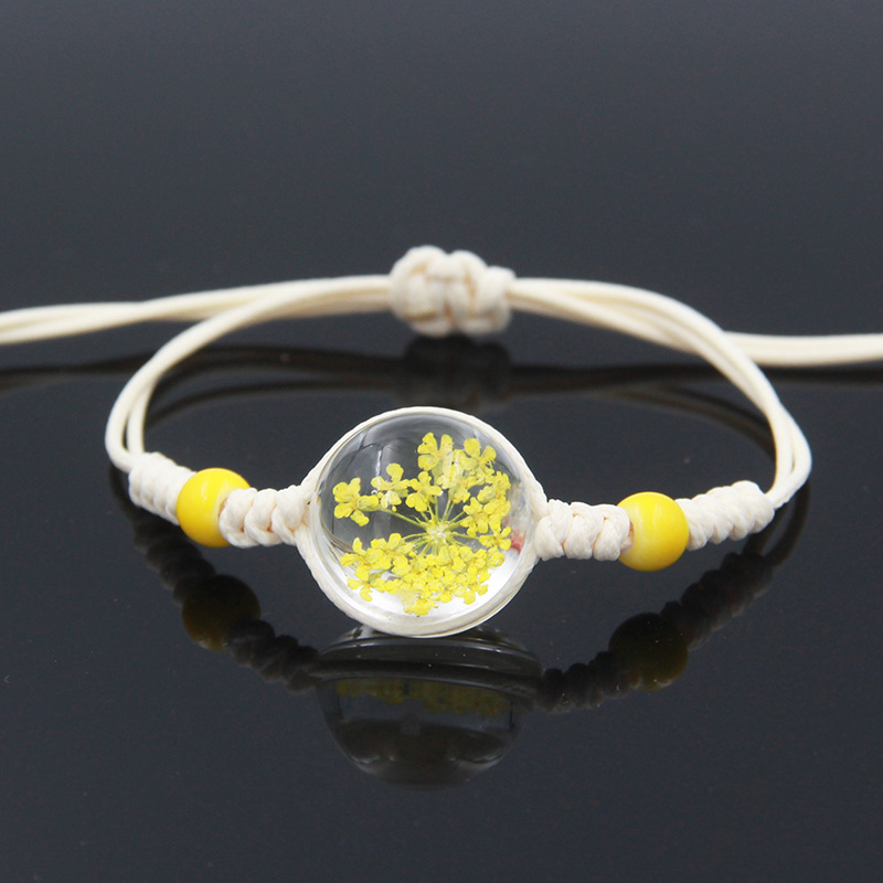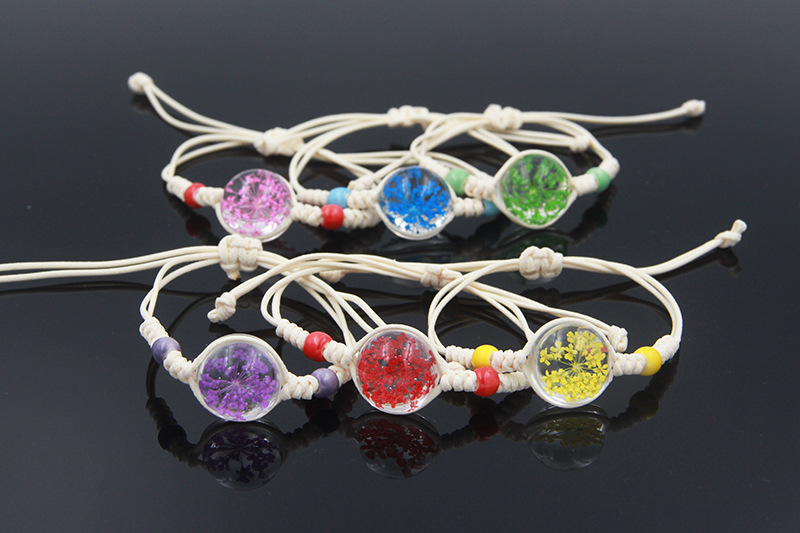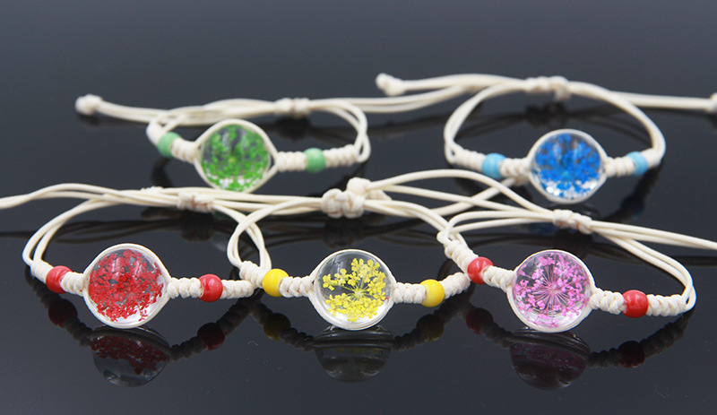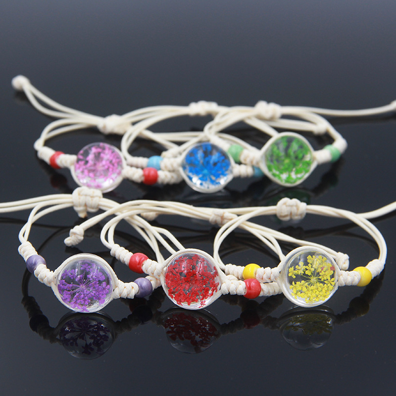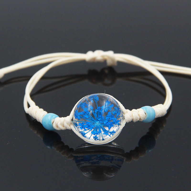 수제 여자 친구 말린 꽃 팔찌 석고 불멸 말린 꽃 크리스탈 유리 공 팔찌 커플 학생 보석스토어 가기