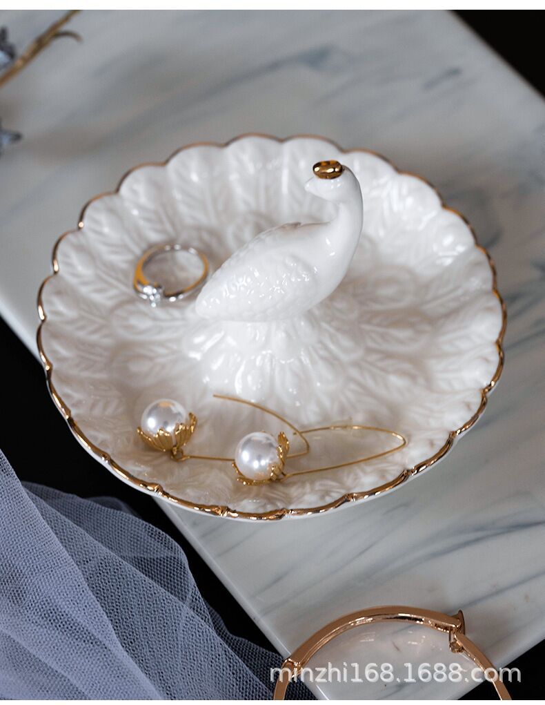 블루 공작 골드 에지 쥬얼리 보관 플레이트 세라믹 쥬얼리 플레이트 세라믹 쥬얼리 플레이트 세라믹 공예 북유럽 크리에이티브 홈 장식