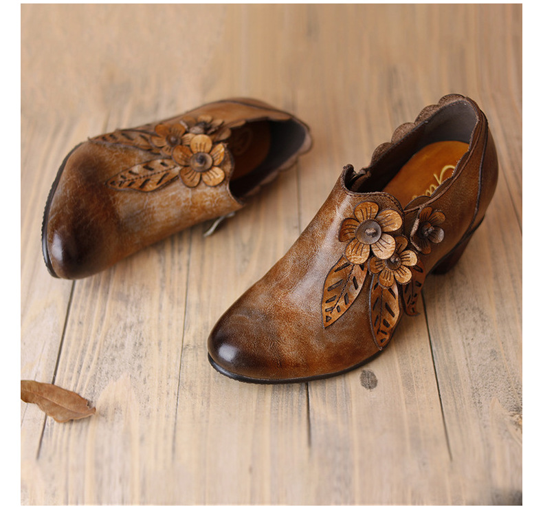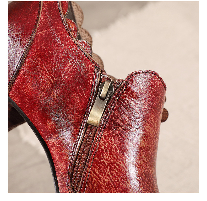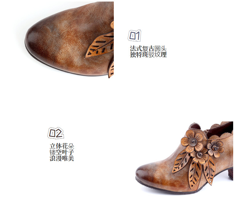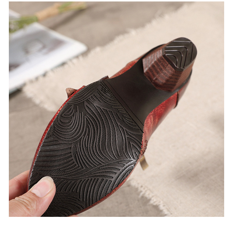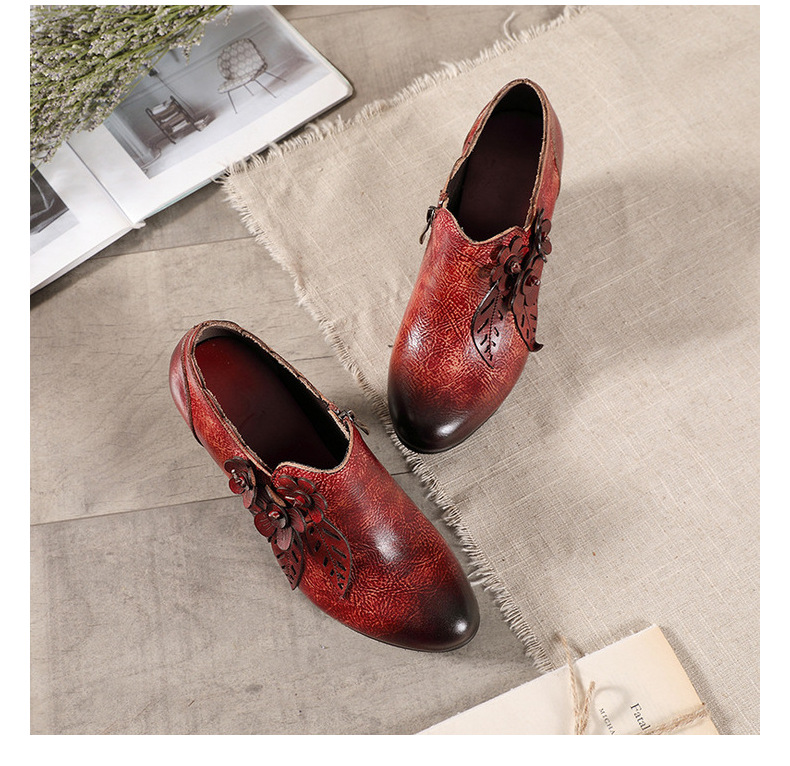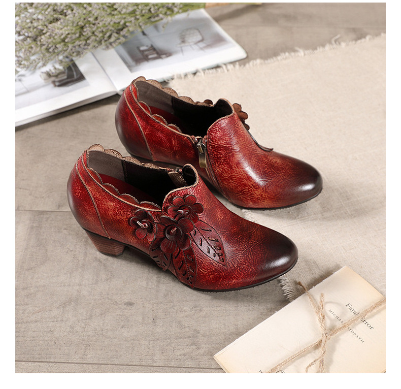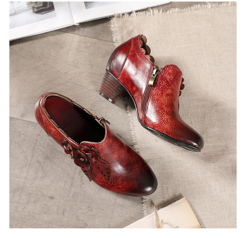 2026 신상 크로스보더 여성용 라운드 토 핸드메이드 레트로 패션 슈즈 사이드 지퍼 하이힐 미들힐 여성화스토어 가기