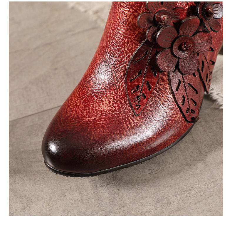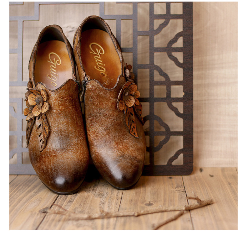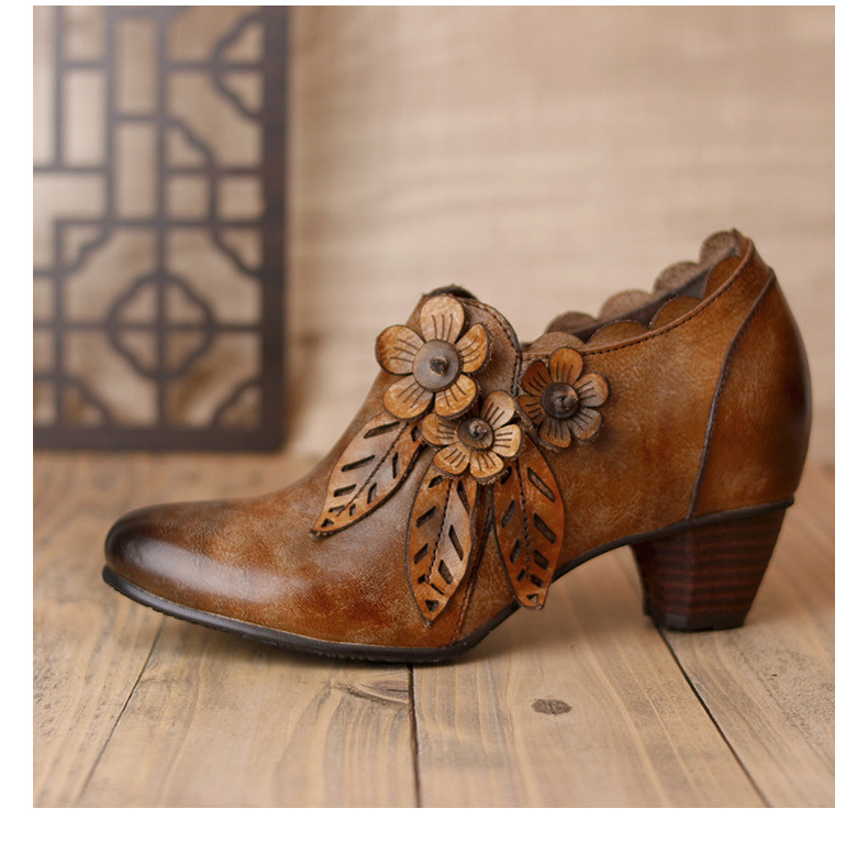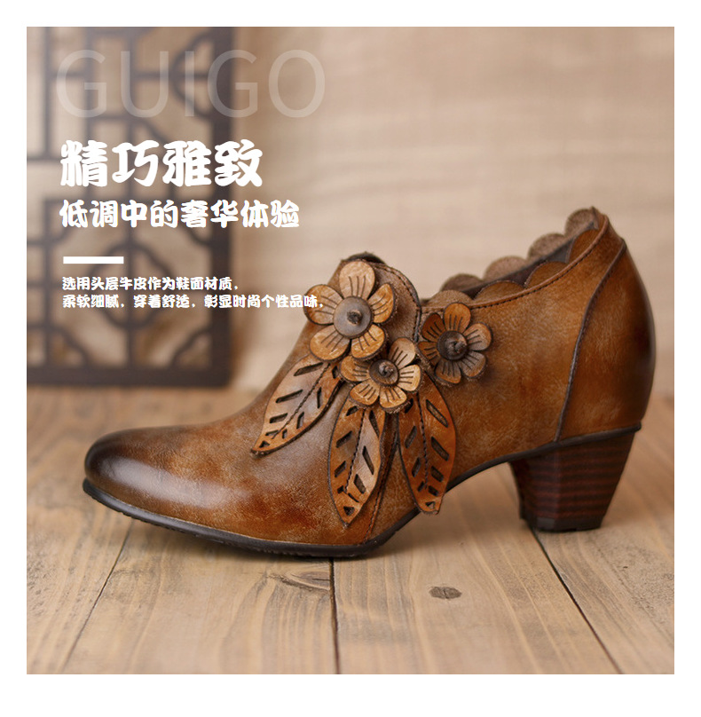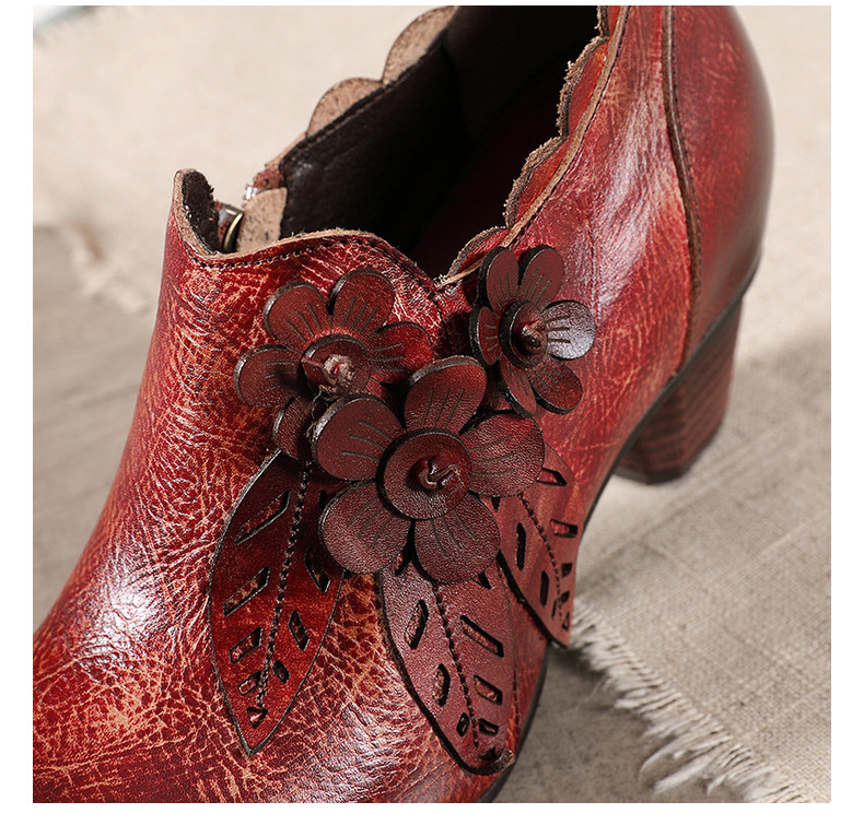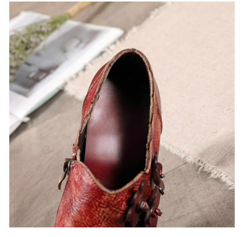 2026 신상 크로스보더 여성용 라운드 토 핸드메이드 레트로 패션 슈즈 사이드 지퍼 하이힐 미들힐 여성화스토어 가기