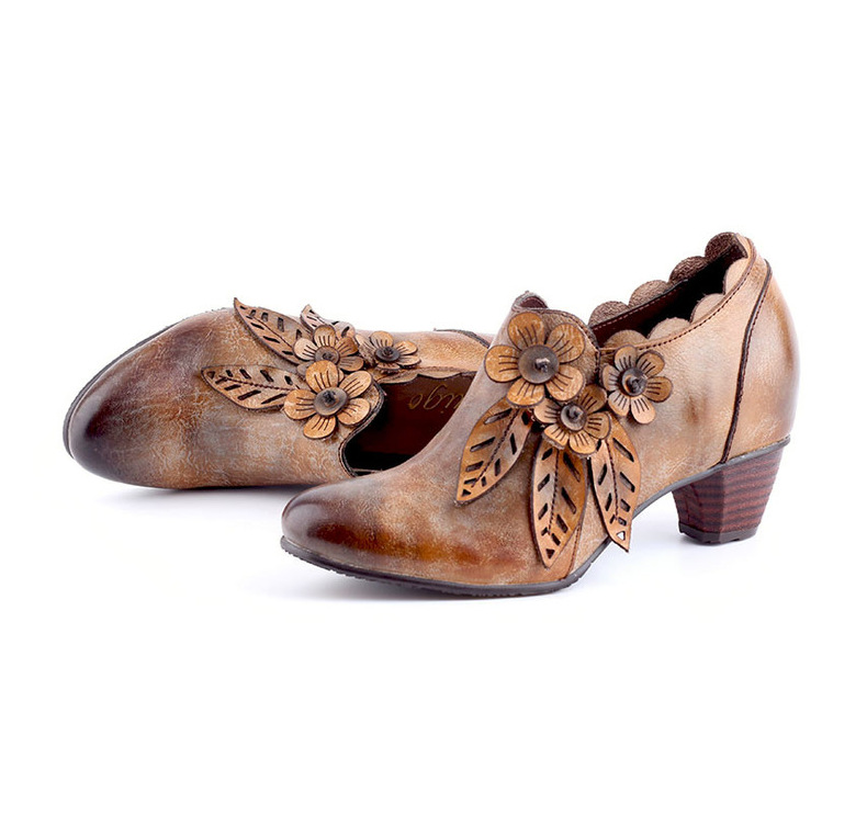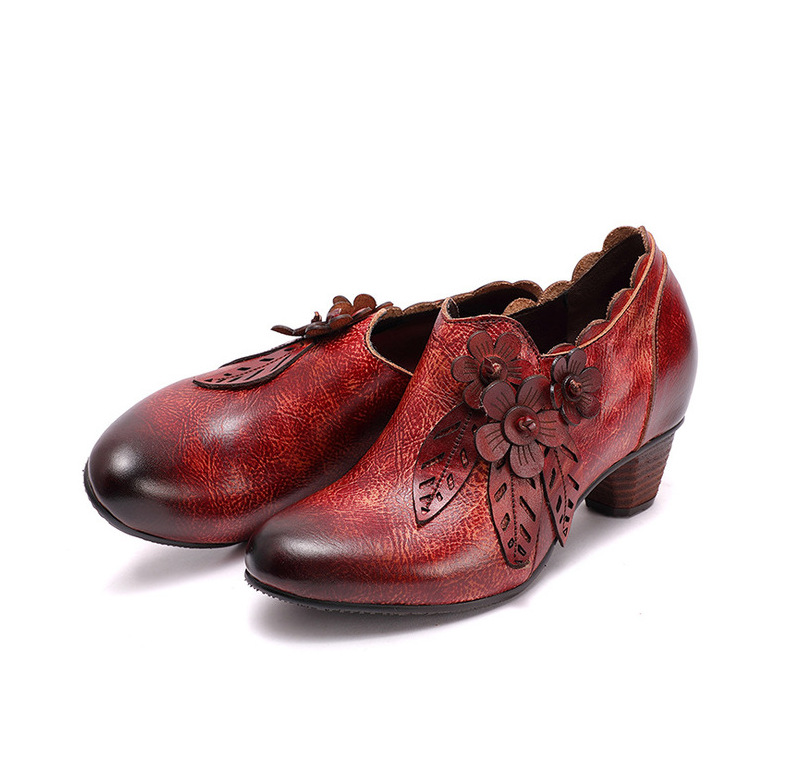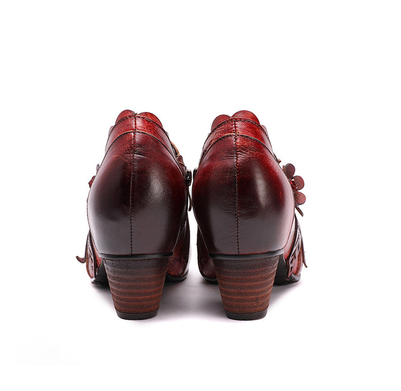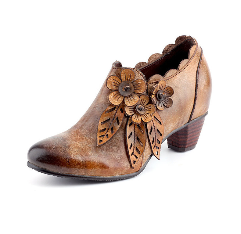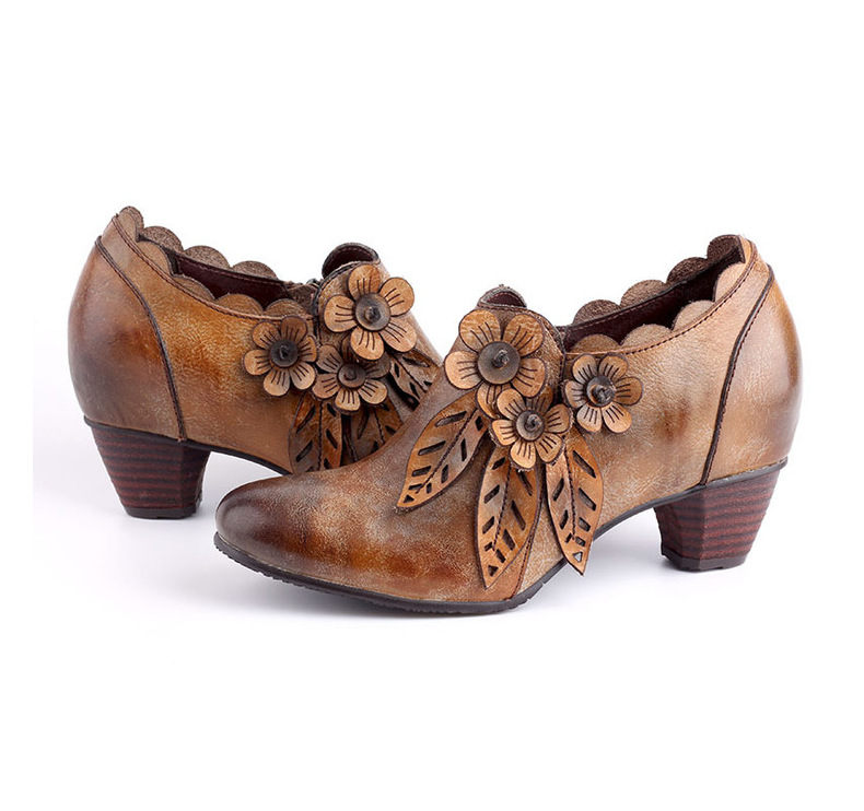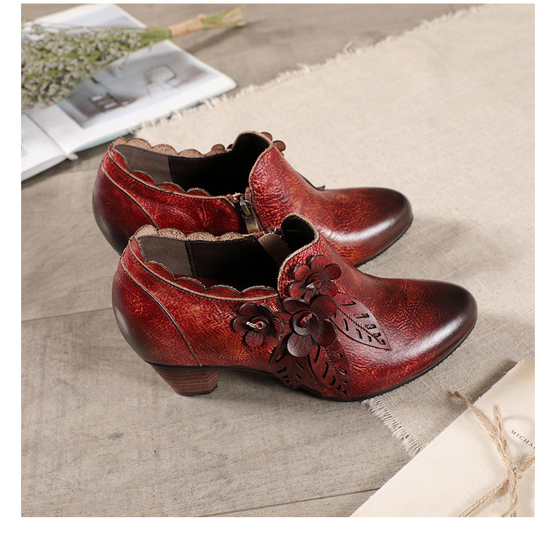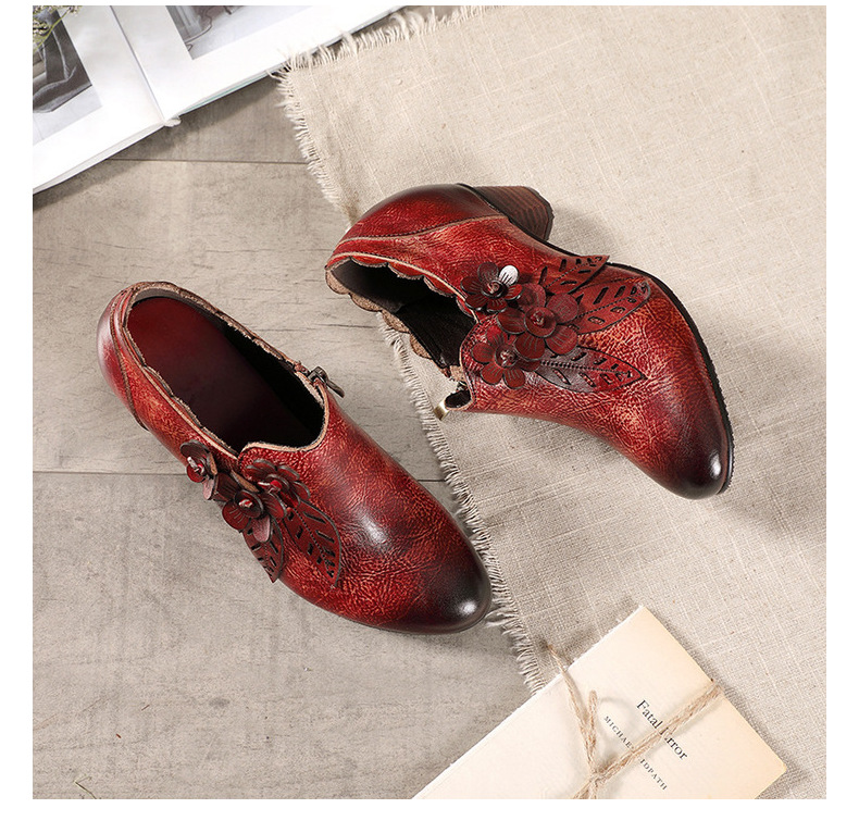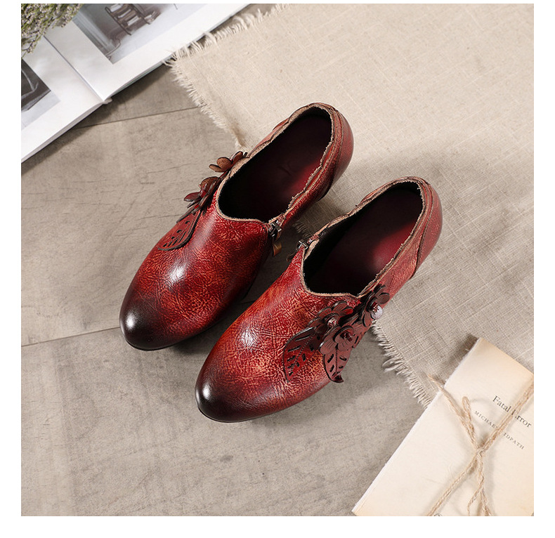 2026 신상 크로스보더 여성용 라운드 토 핸드메이드 레트로 패션 슈즈 사이드 지퍼 하이힐 미들힐 여성화