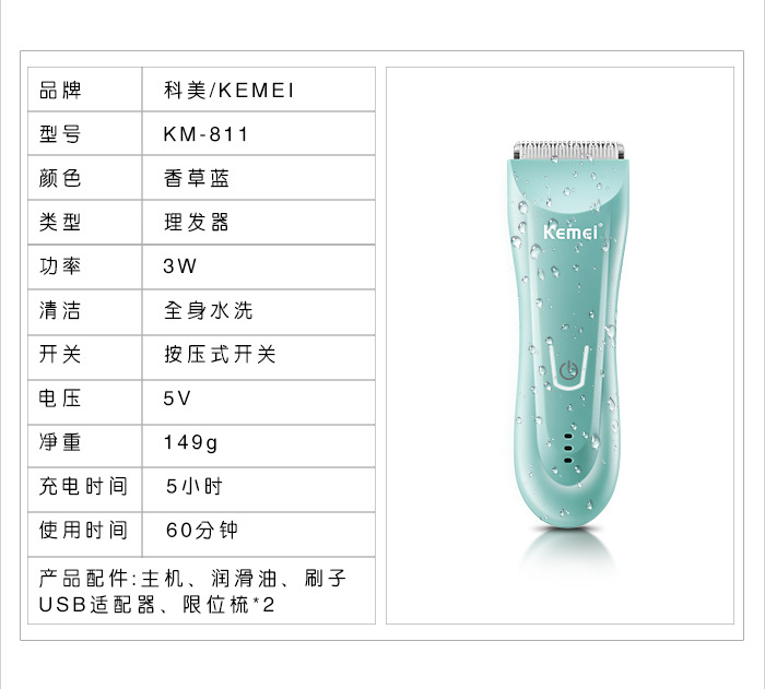 Kemei 아기 전기 가위 Kemei 세라믹 커터 헤드 바디 KM-811 가정용 어린이 헤어 클리퍼
