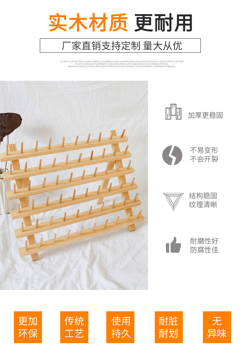 크로스 보더 60 축 목재 바느질 실 보관 랙 소나무 접이식 스풀 랙 가죽 실 보관 랙 스풀 랙