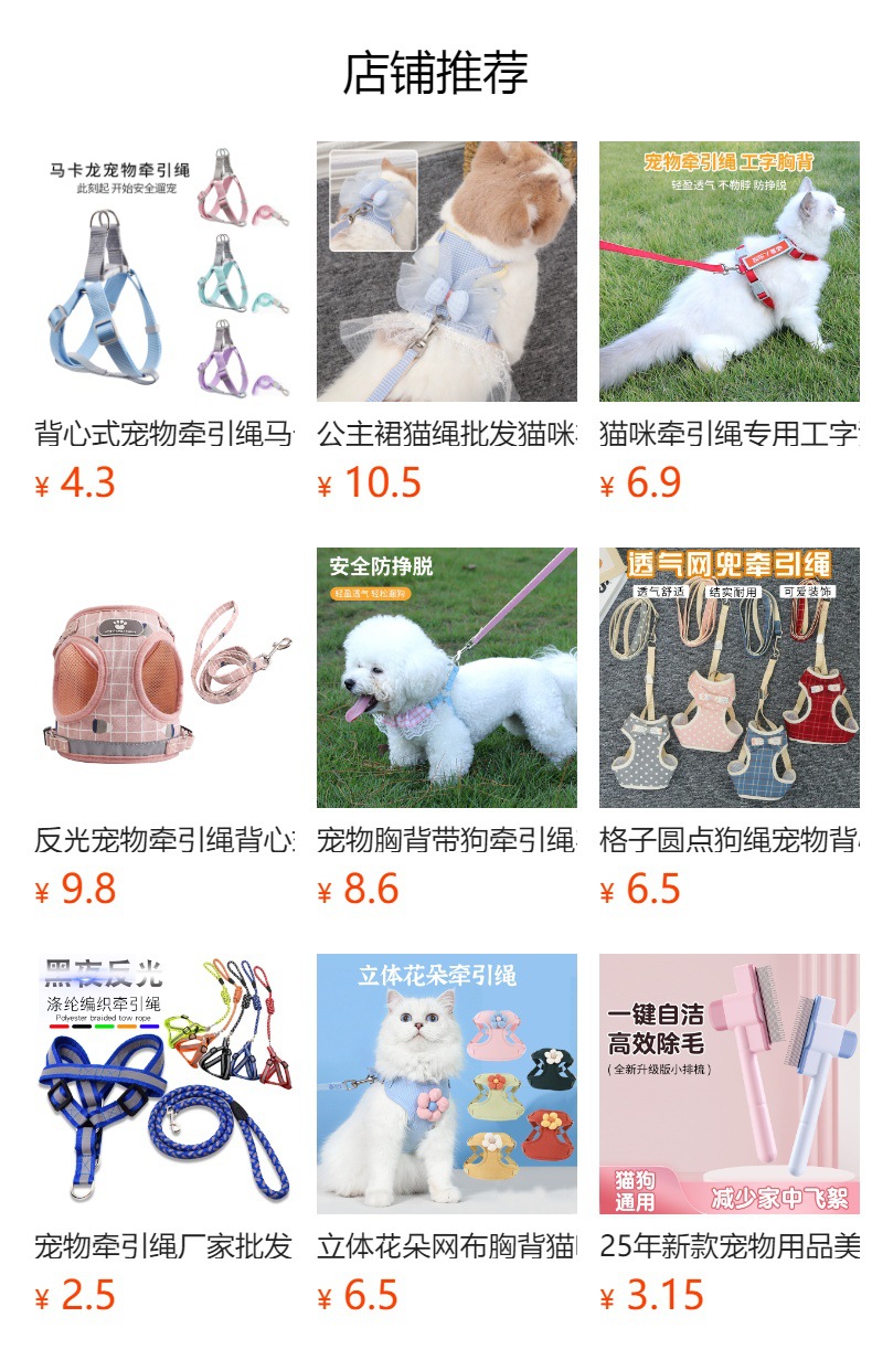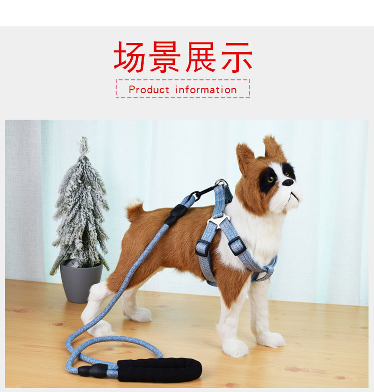 도매용 린넨 원형 로프 애완견 목줄 조절 가능한 중소형견용 가슴줄 용품 신축성 있음스토어 가기