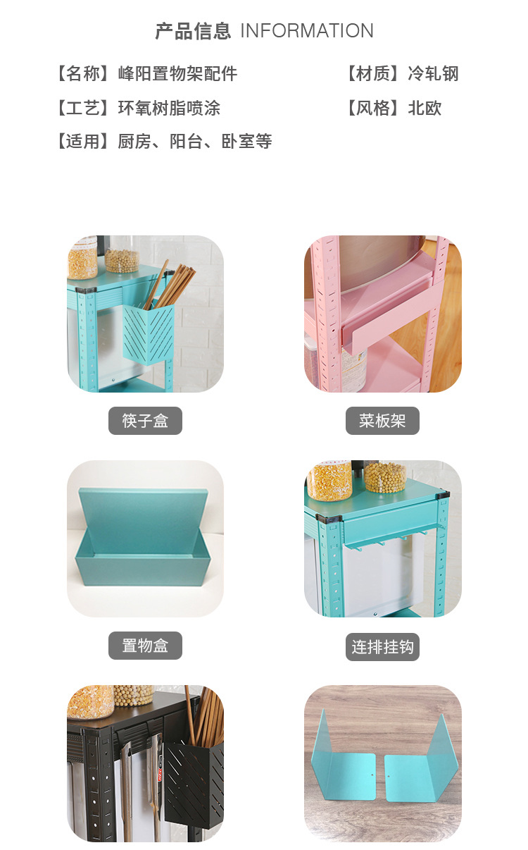 【펑양 수납 선반-액세서리】단일 후크+젓가락통+도마걸이+연속 후크+바퀴 등