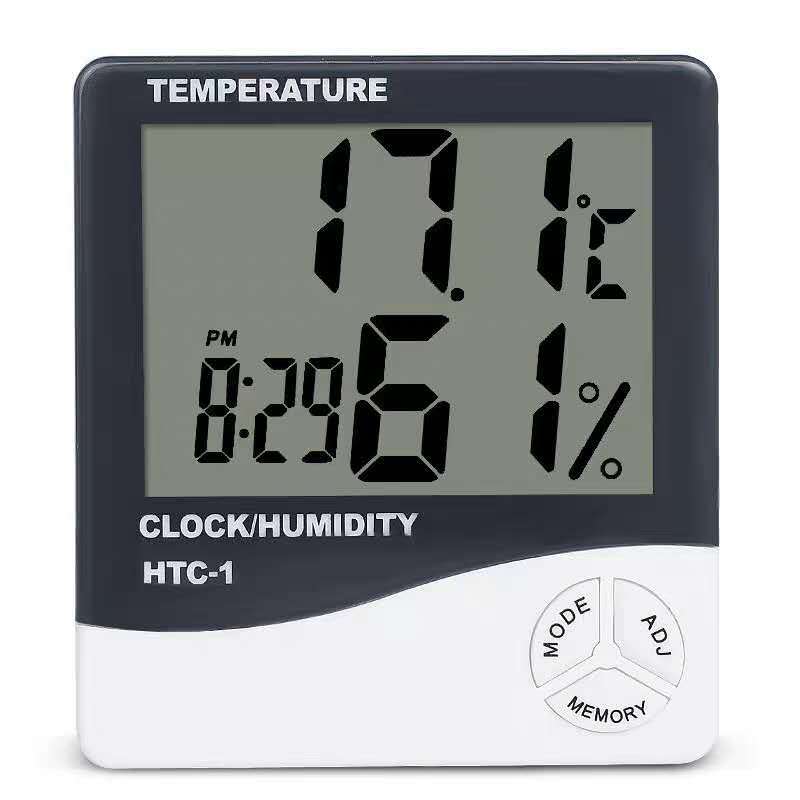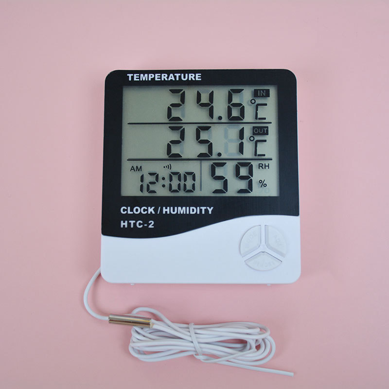 HTC-2 대형 화면 가정용 온도계 및 습도계, 실내 아기방용 전자 온도계(전자 알람시계 포함)