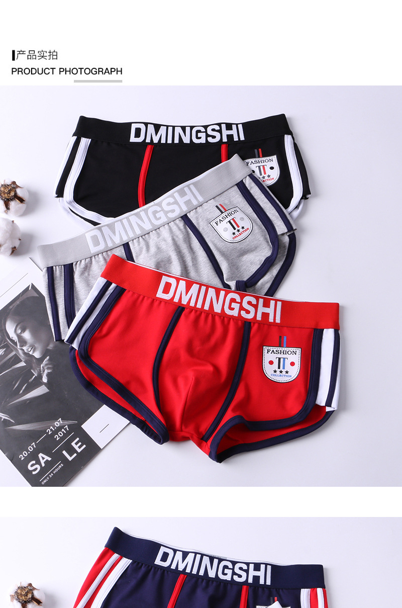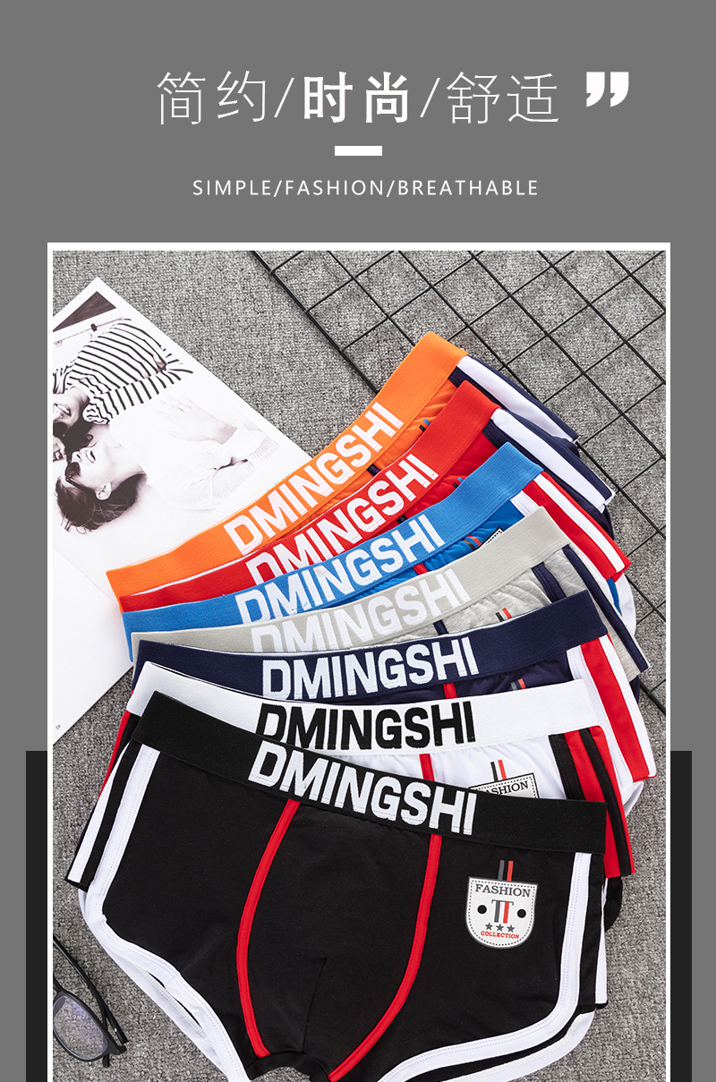 남성용 사각팬티, 순면, 개성있고 트렌디하며 스포티하고 편안하며 통기성 좋고 섹시한 한국 스타일 청소년 사각팬티