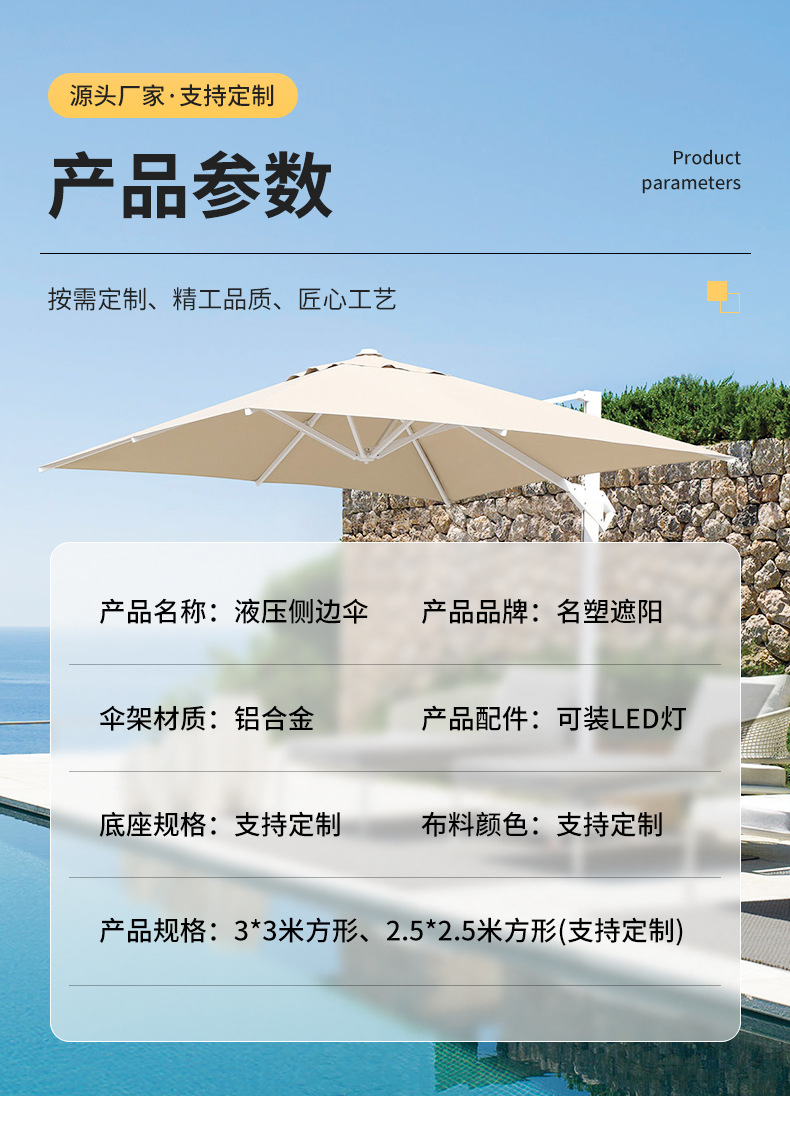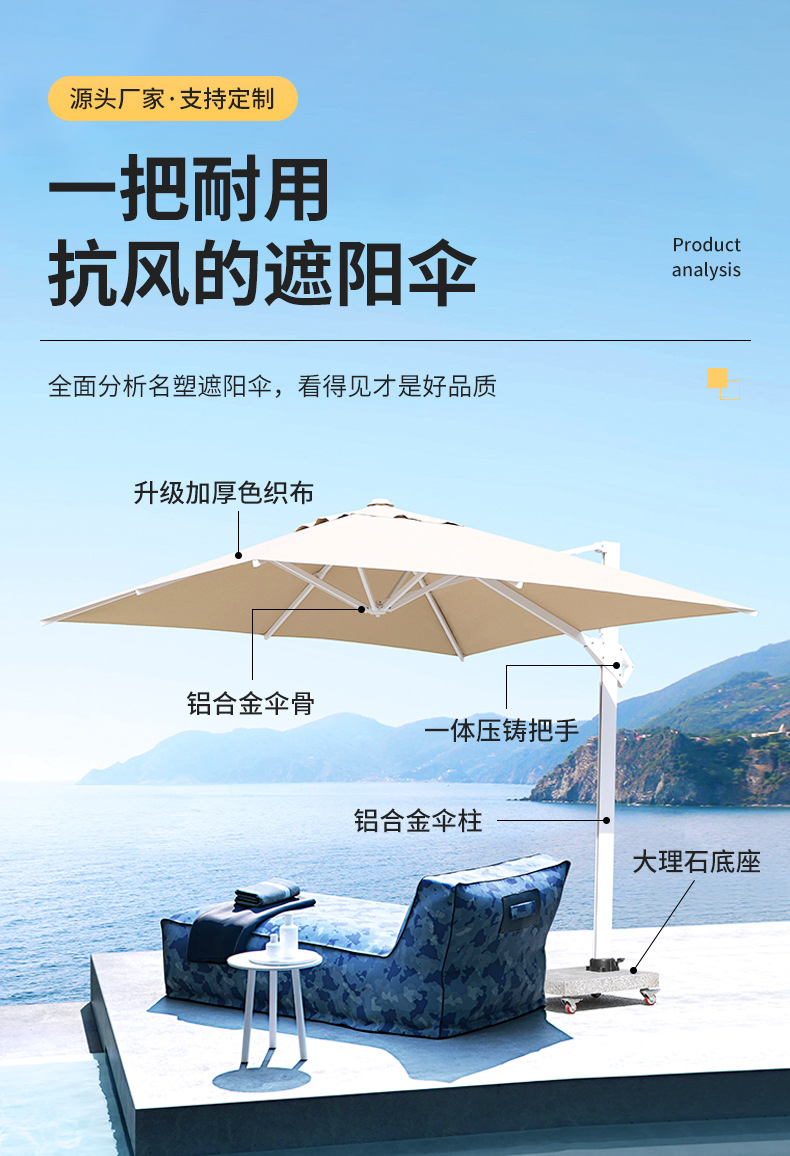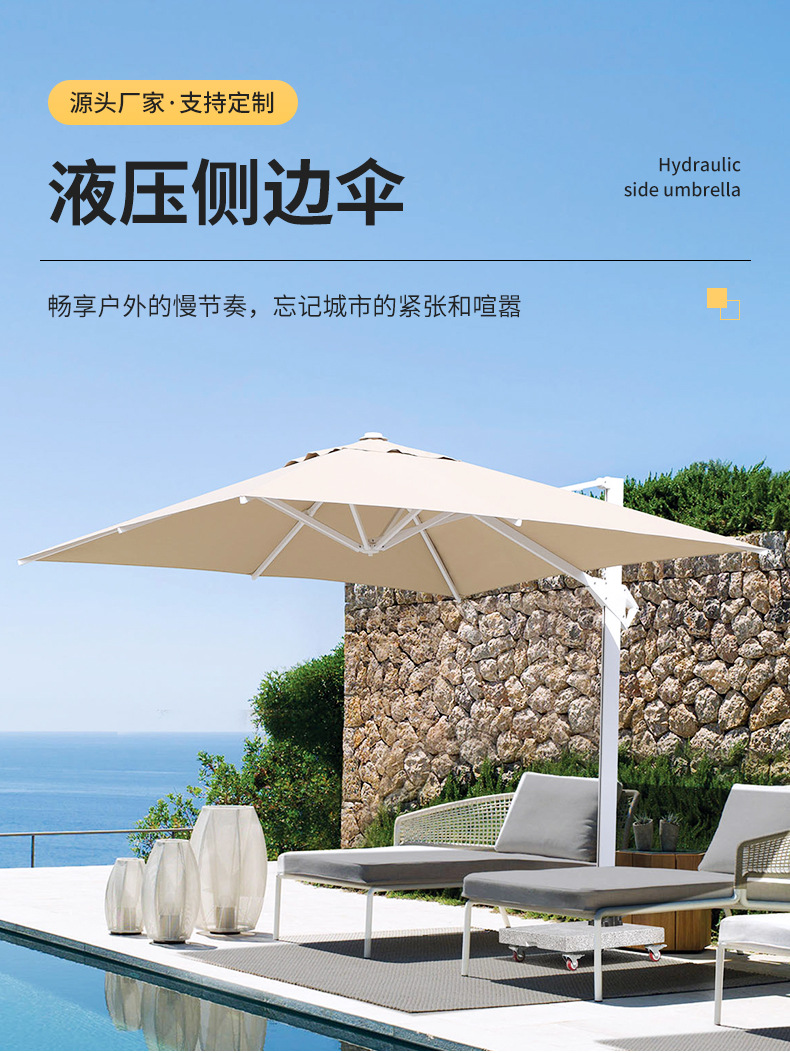야외용 차양우산, 유압식 정원용/마당용 태양우산, 이동식 방풍 광고용 사이드스탠딩 로마우산, 방풍 기능