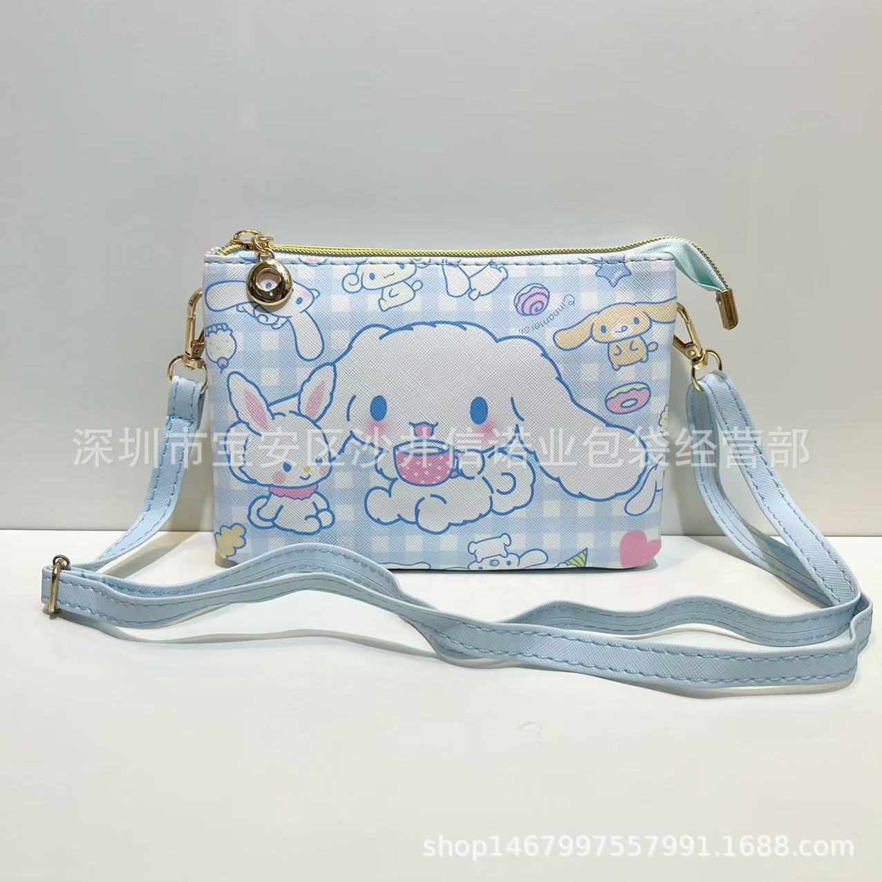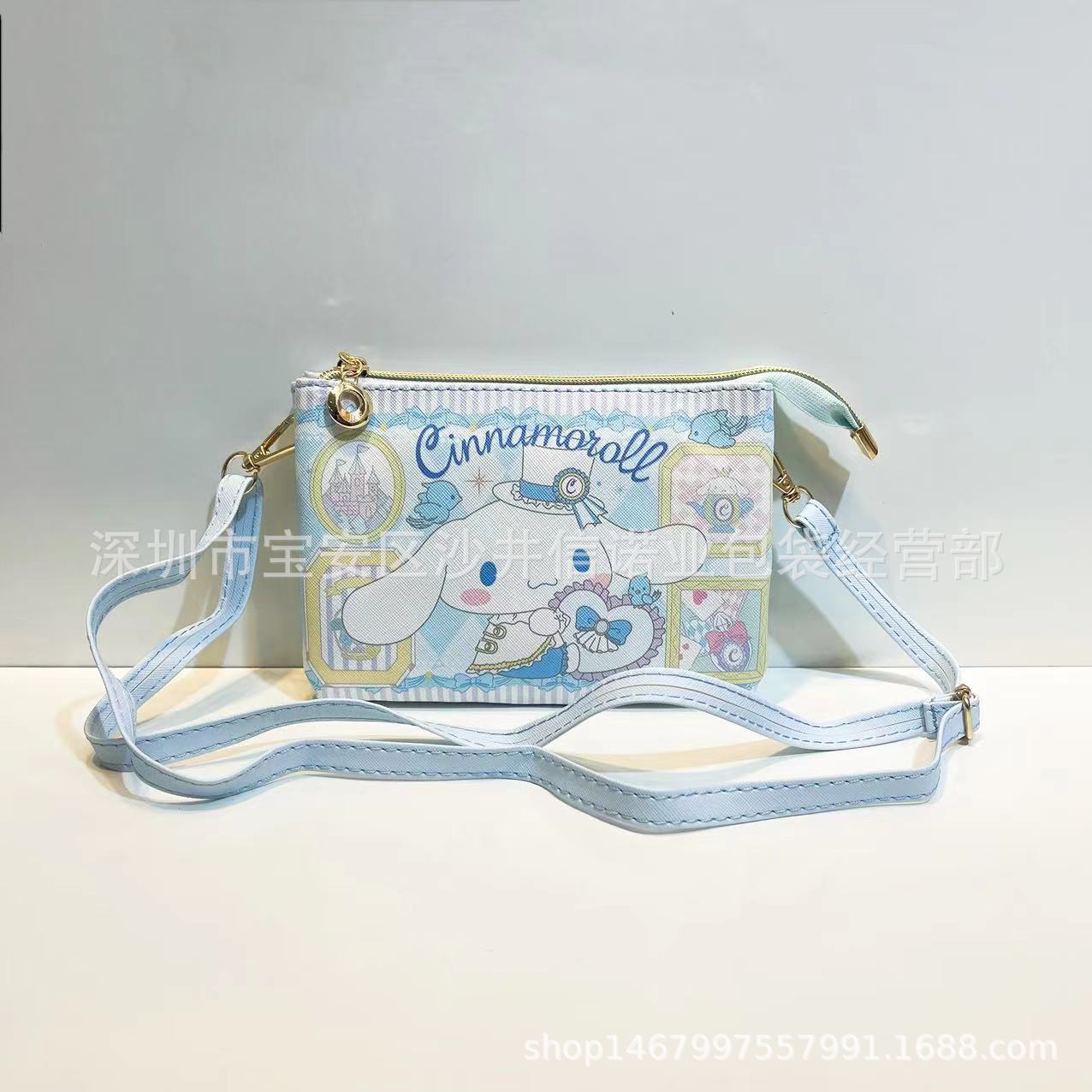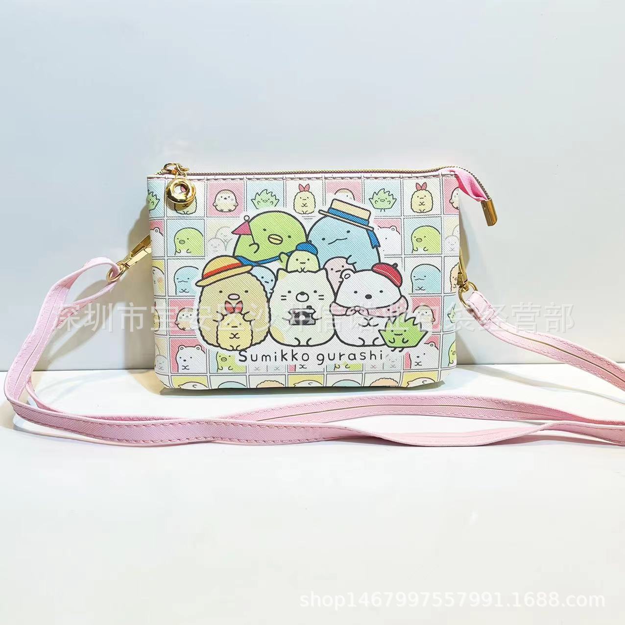 这款卡通斜挎女包横款设计,内部有隔层口袋和证件袋 配有一根斜挎带可调节长