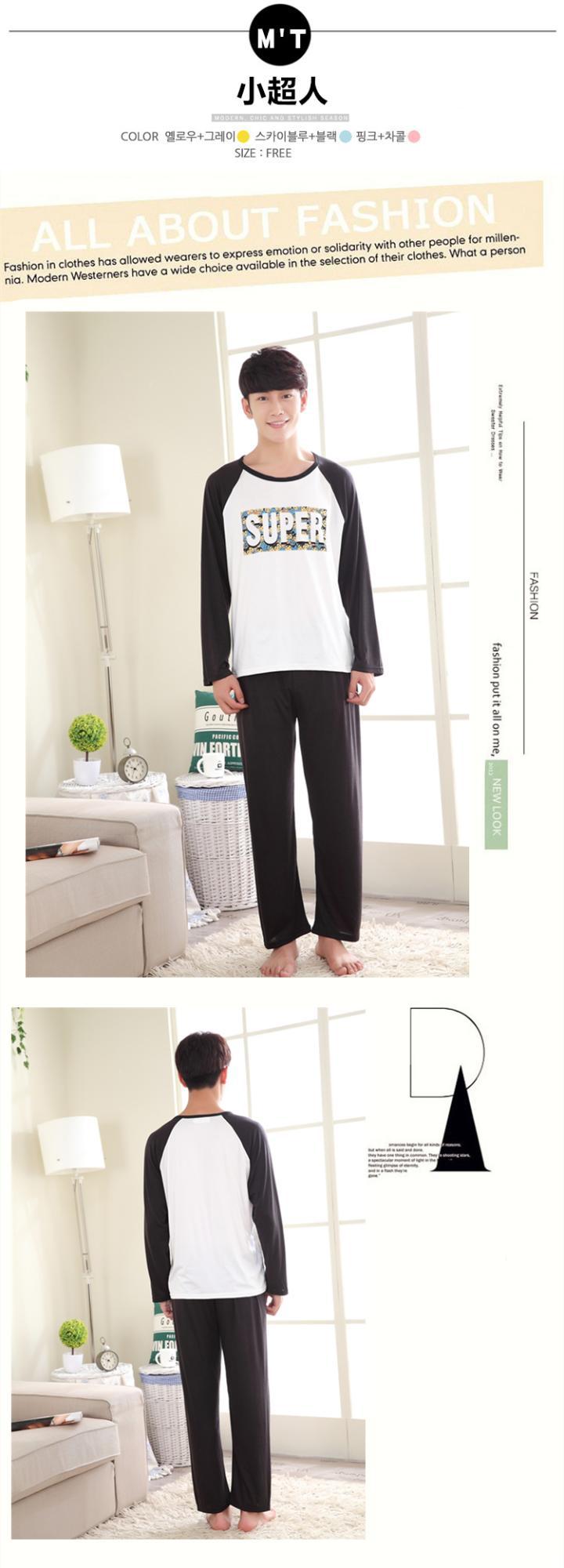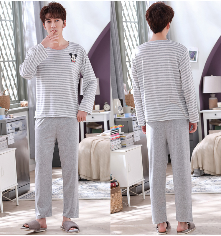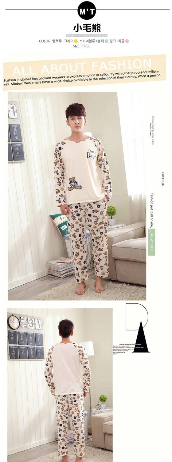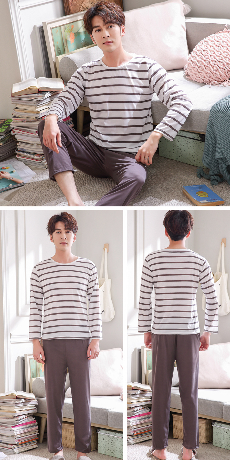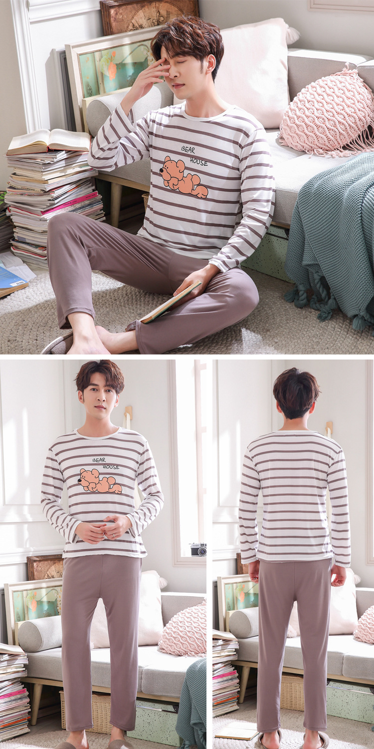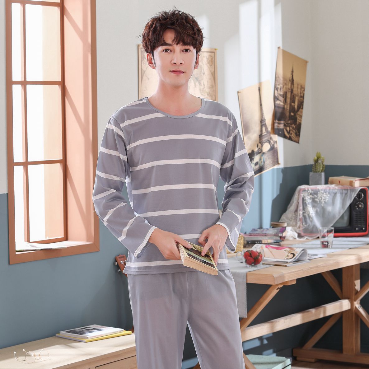 봄과 가을 긴 소매 바지 남자의 잠옷 가정 옷 느슨한 캐주얼 플러스 사이즈 잠옷 남자의 가정 옷을 착용 할 수 있습니다