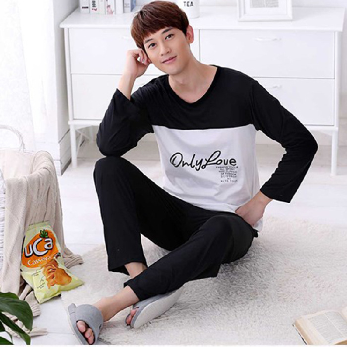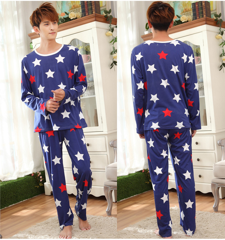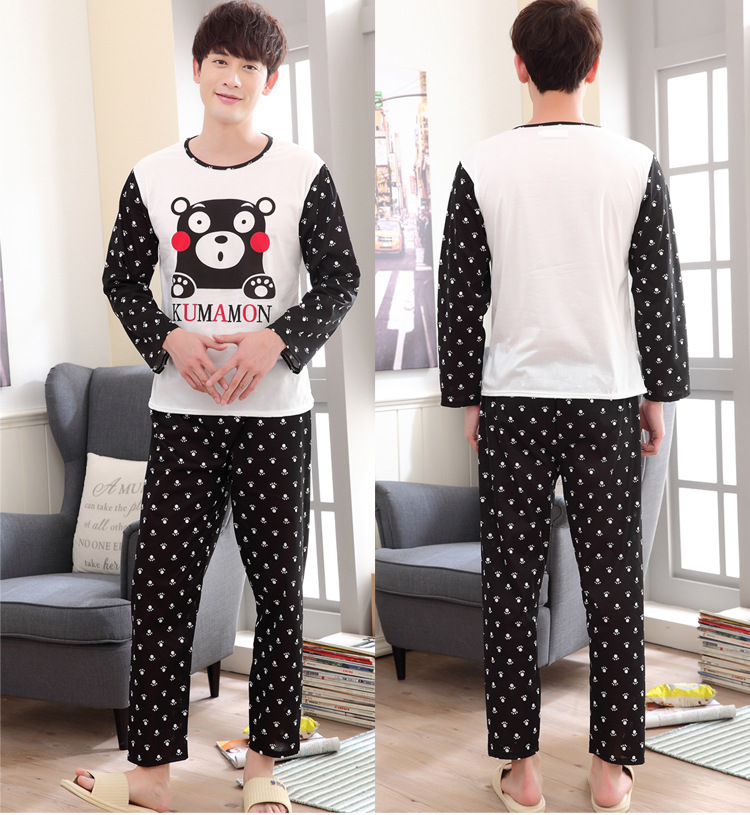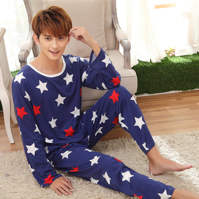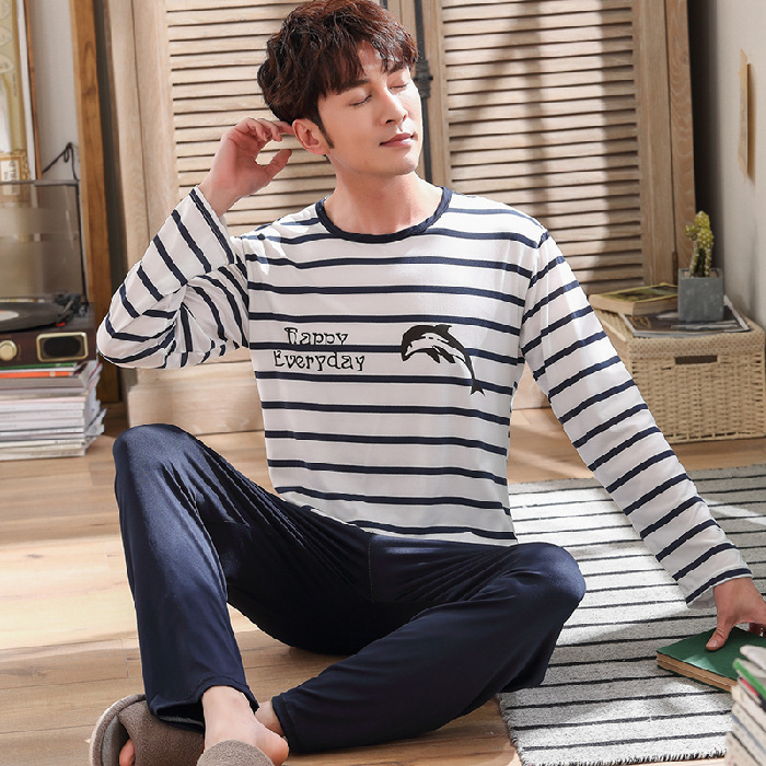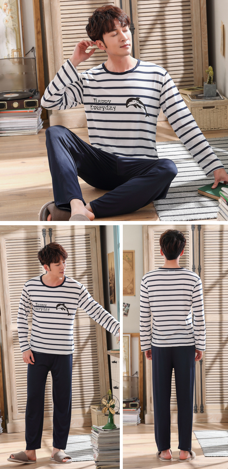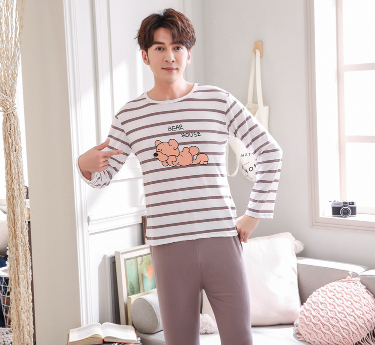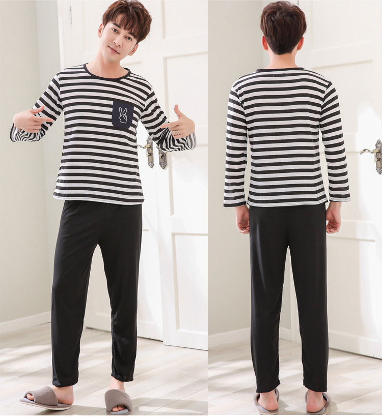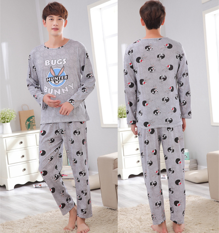 봄과 가을 긴 소매 바지 남자의 잠옷 가정 옷 느슨한 캐주얼 플러스 사이즈 잠옷 남자의 가정 옷을 착용 할 수 있습니다