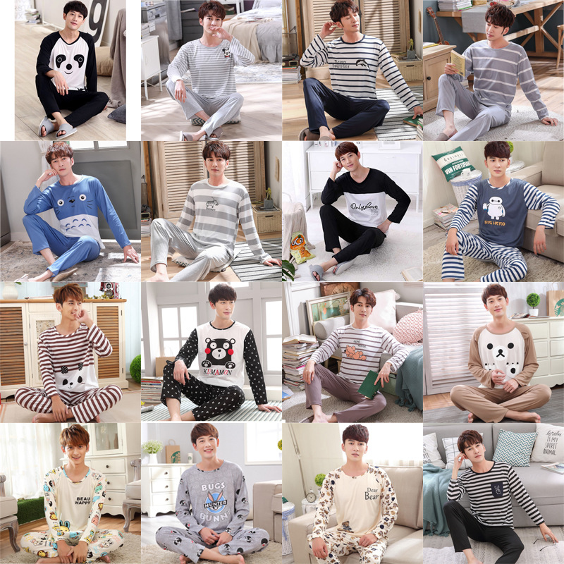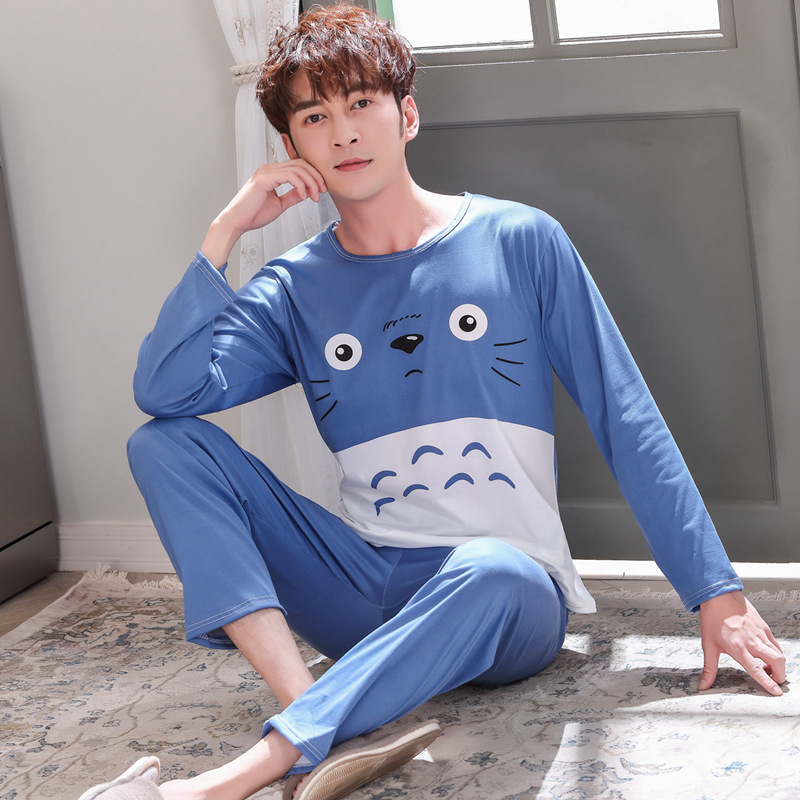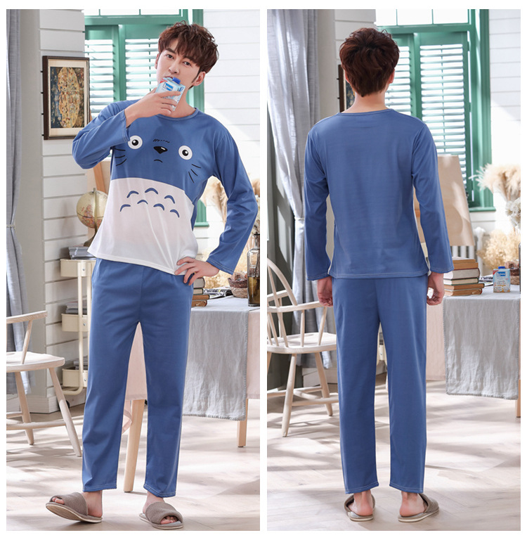 봄과 가을 긴 소매 바지 남자의 잠옷 가정 옷 느슨한 캐주얼 플러스 사이즈 잠옷 남자의 가정 옷을 착용 할 수 있습니다스토어 가기