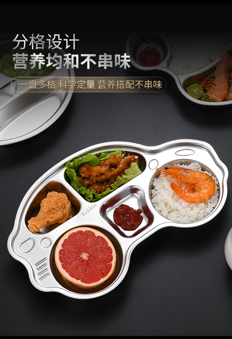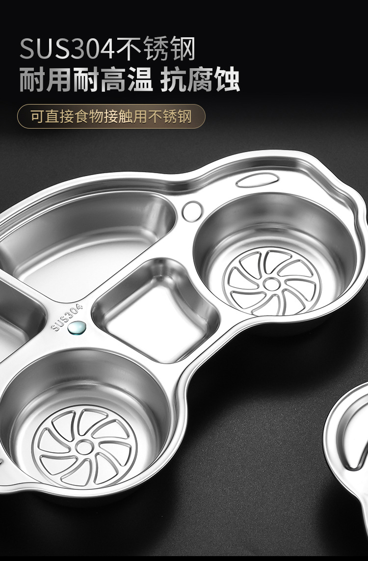 304 스테인레스 스틸 어린이 접시 만화 분할 접시 아기 창조적 인 어린이 스테인레스 스틸 접시 자동차 접시