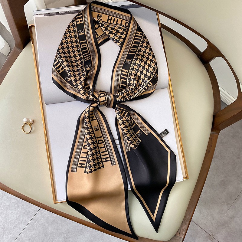 빈티지 스카프 캐리지 얇은 좁은 긴 모조 실크 스카프 여성 장식 날카로운 코너 패션 장식 헤어 밴드 스카프 도매