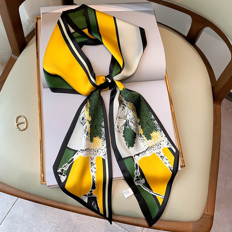 复古丝巾马车细窄长条仿真丝围巾女装饰尖角时尚装饰发带丝巾批发