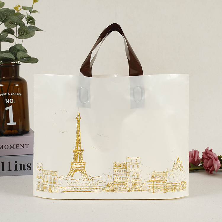 플라스틱 휴대용 의류 가방 선물 포장 가방 쇼핑 가방 고압 휴대용 파리 타워 1 팩 50스토어 가기