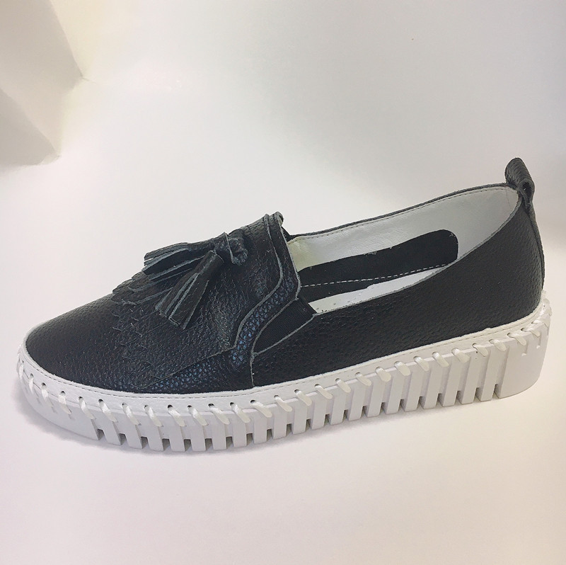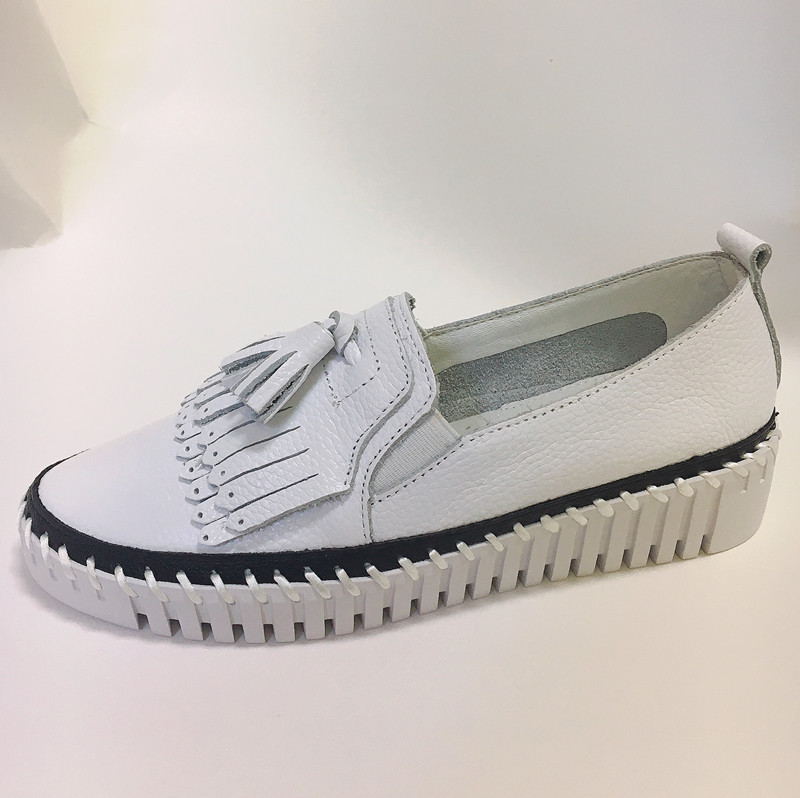 3031-2 로퍼 한국 정품 가죽 고층 술 흰색 신발 여성용 라운드 토 로우 탑 싱글 레이어 신발 캐주얼 봉제 게으른 신발