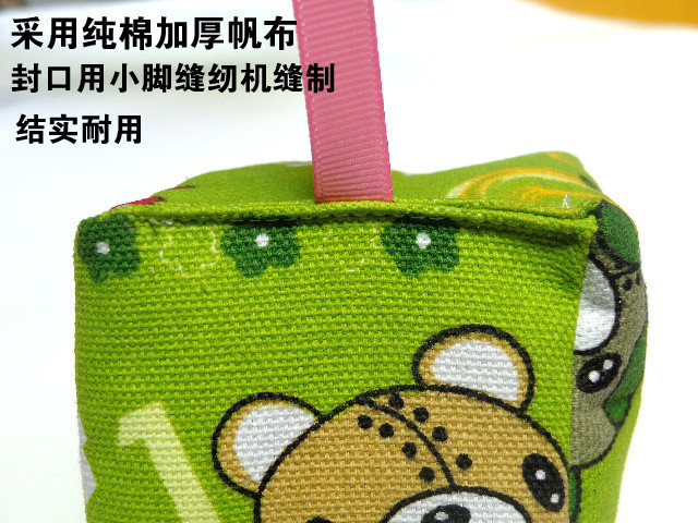 带绳子儿童沙包材料:外用纯棉帆布,结实耐磨。