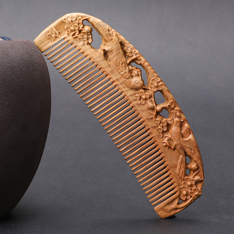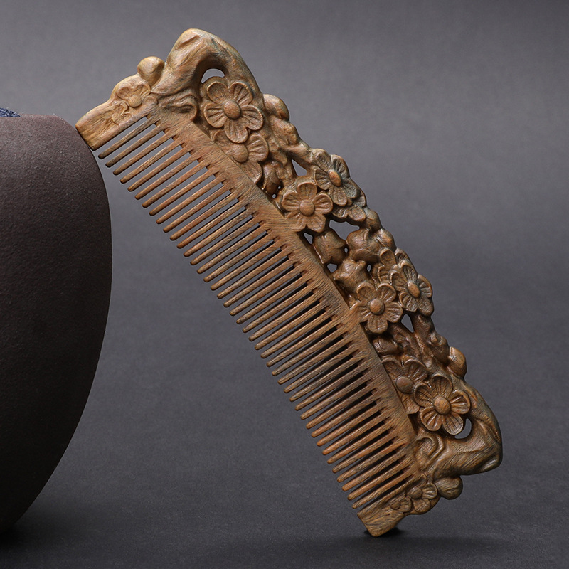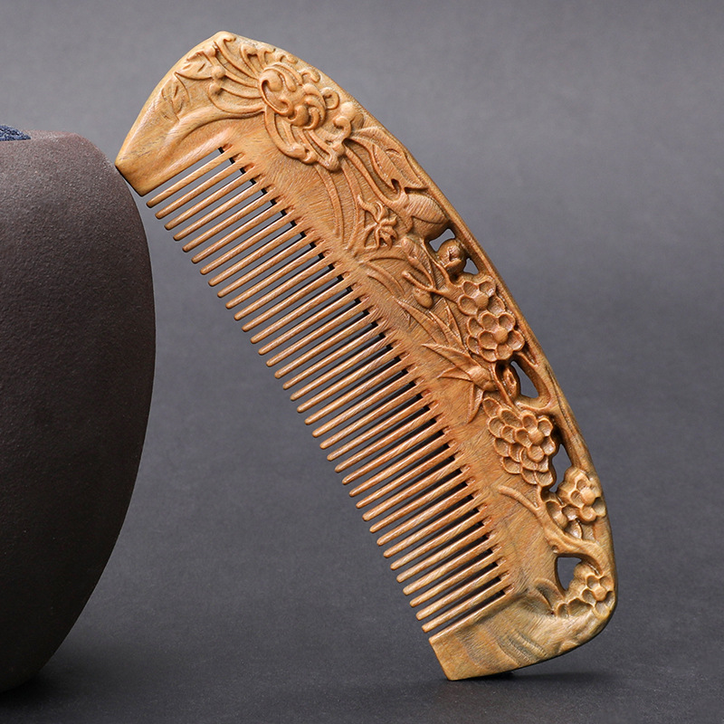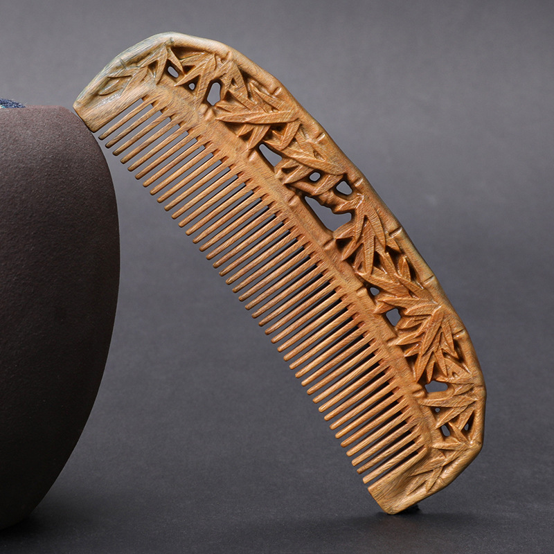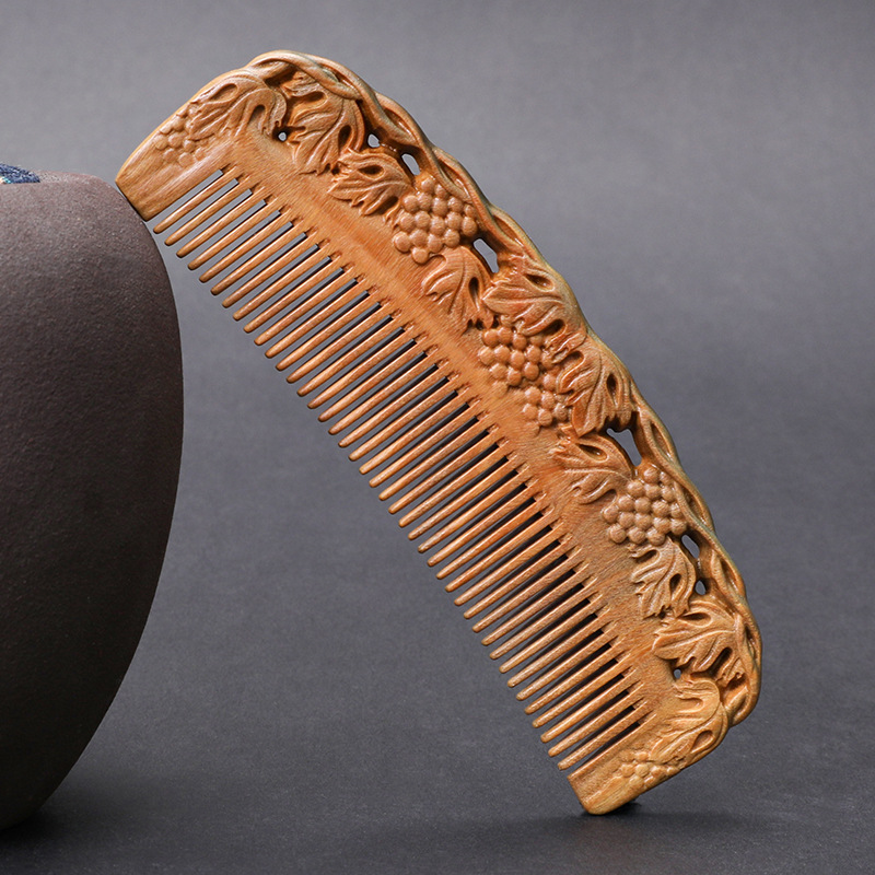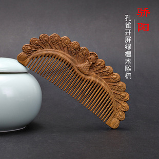녹색 백단향 빗 긴 머리 마사지 빗 양면 조각 다운 머리 빗 도매 백단향 빗 기념 선물스토어 가기