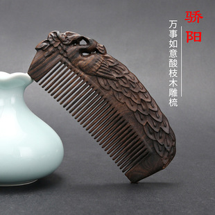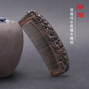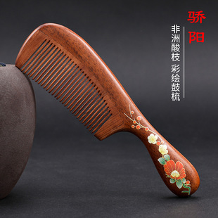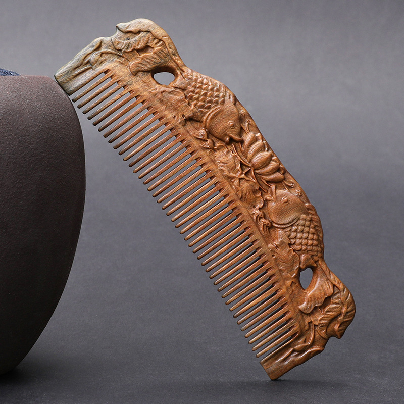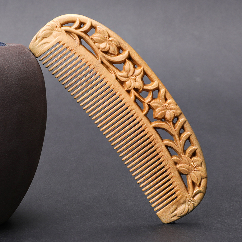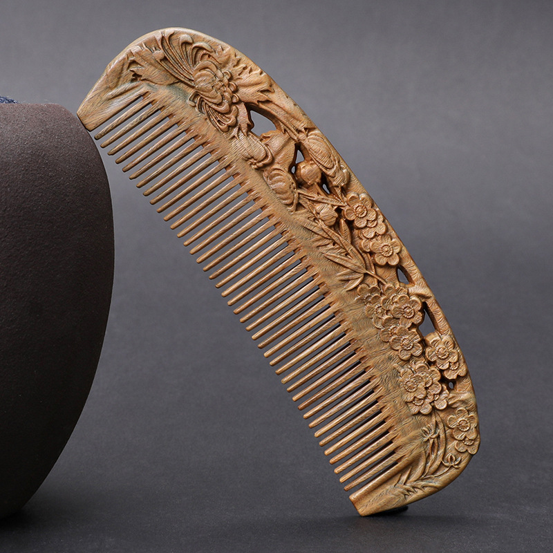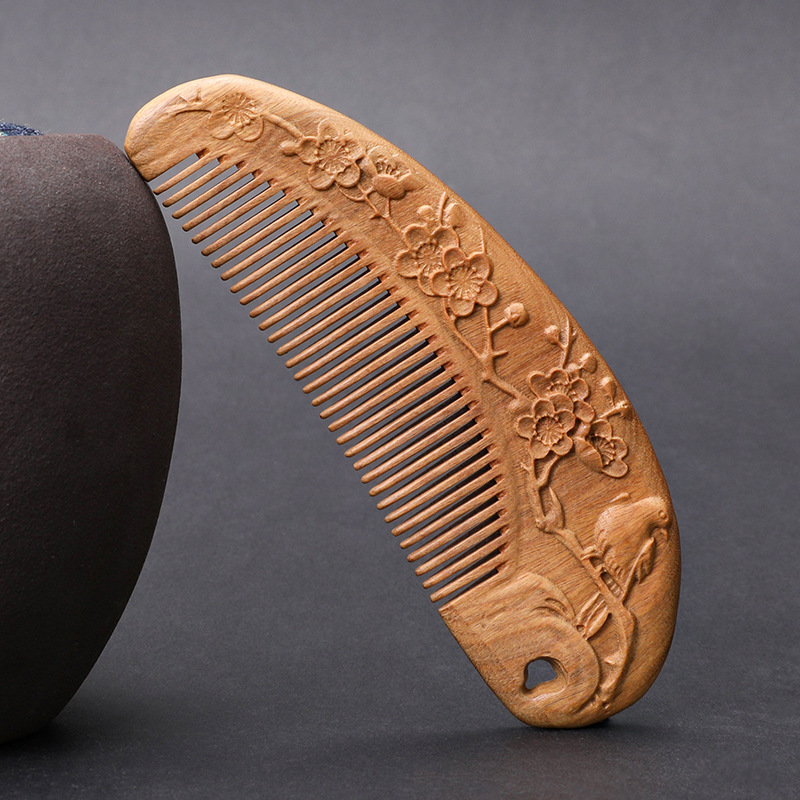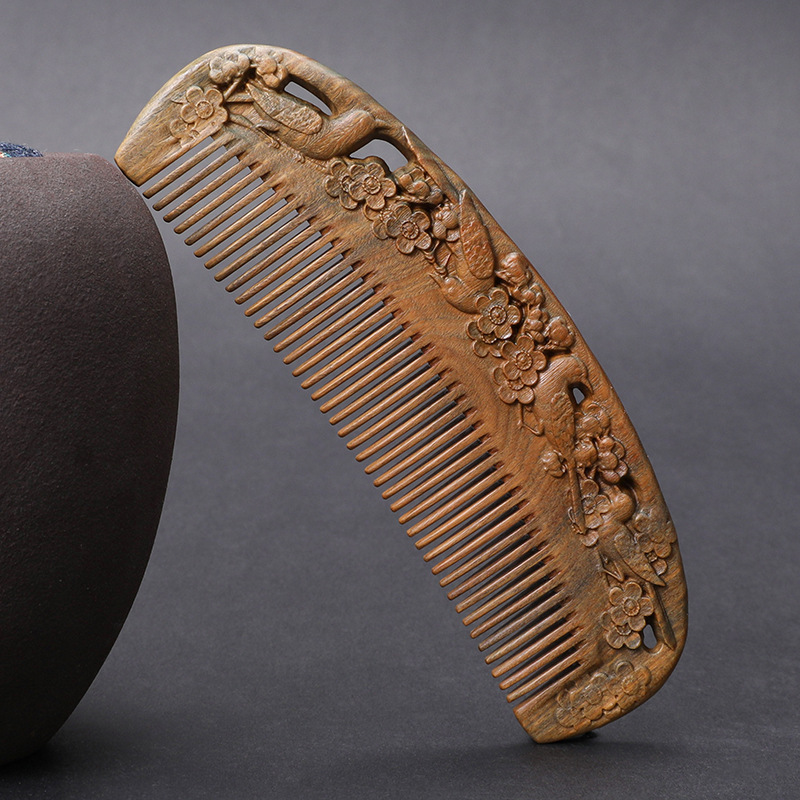 녹색 백단향 빗 긴 머리 마사지 빗 양면 조각 다운 머리 빗 도매 백단향 빗 기념 선물스토어 가기
