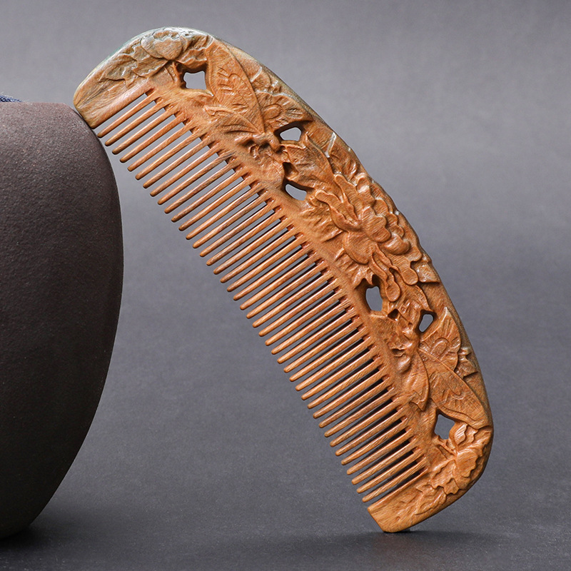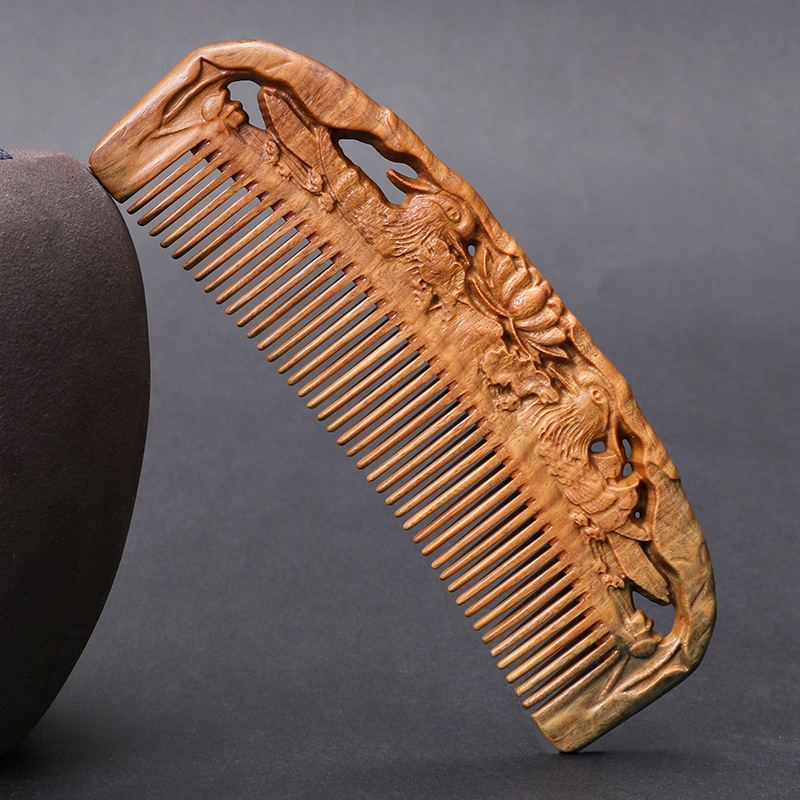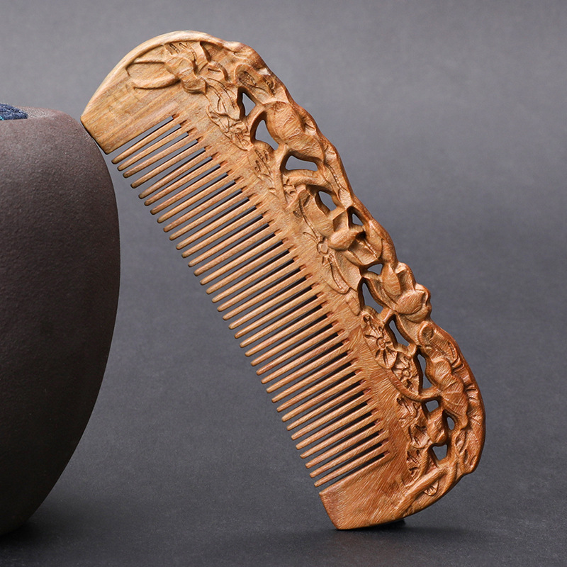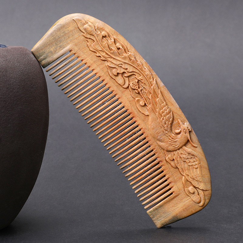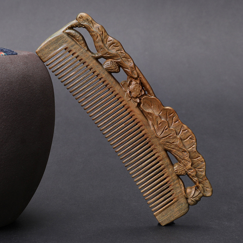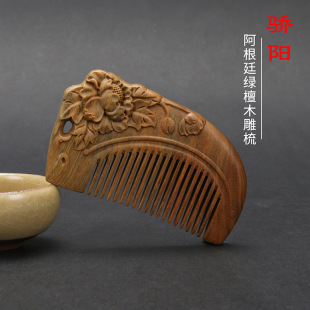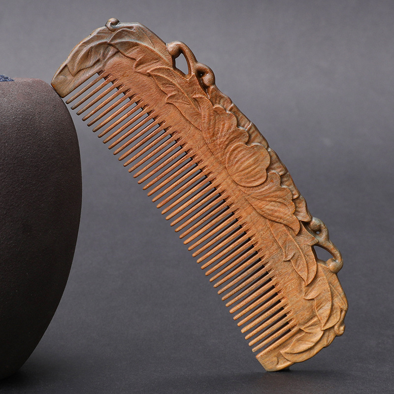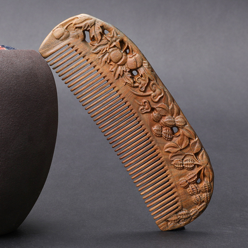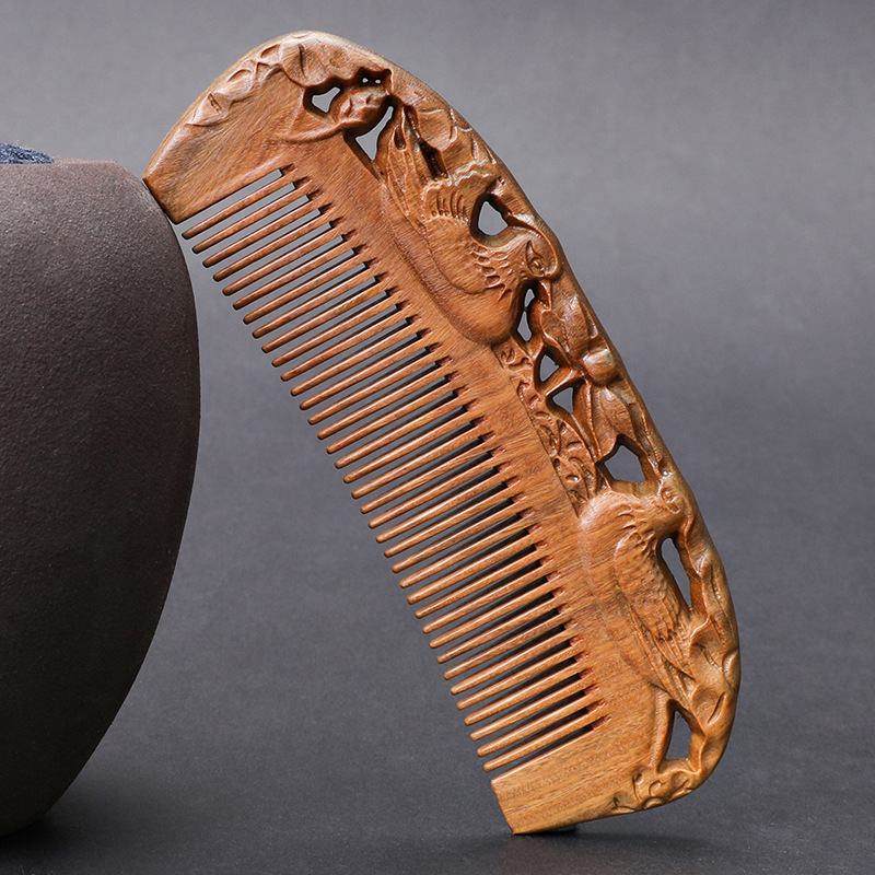 녹색 백단향 빗 긴 머리 마사지 빗 양면 조각 다운 머리 빗 도매 백단향 빗 기념 선물