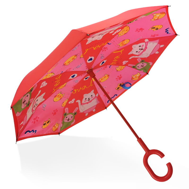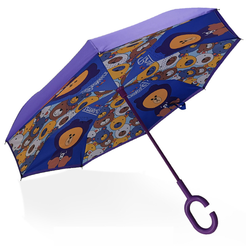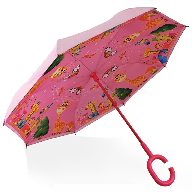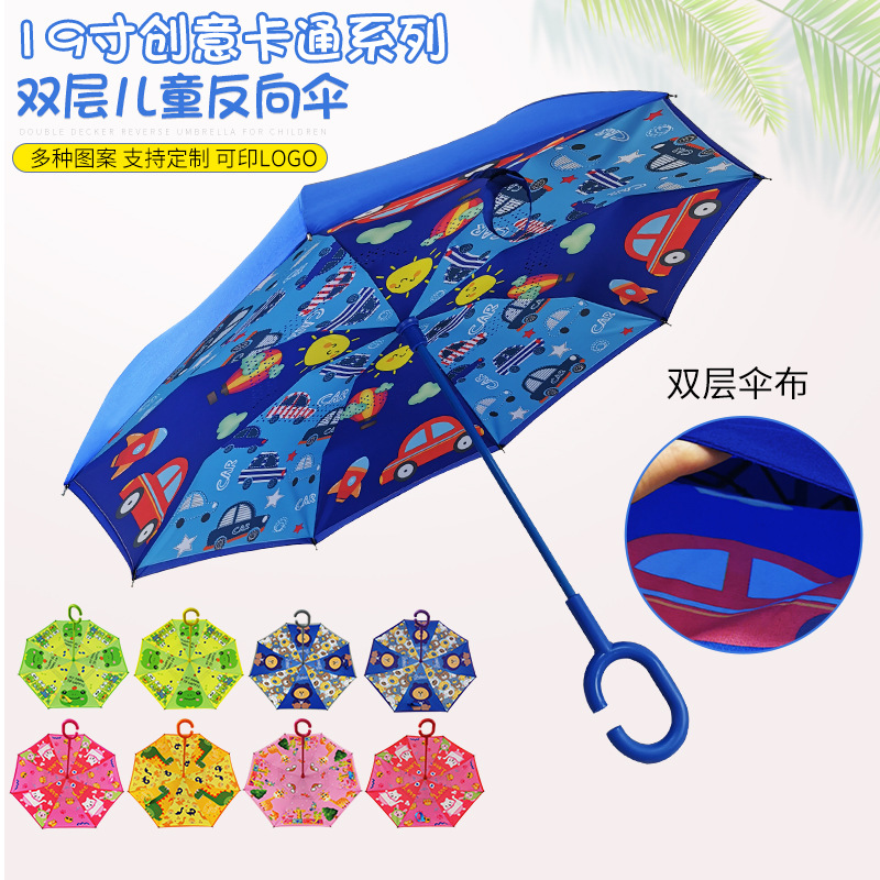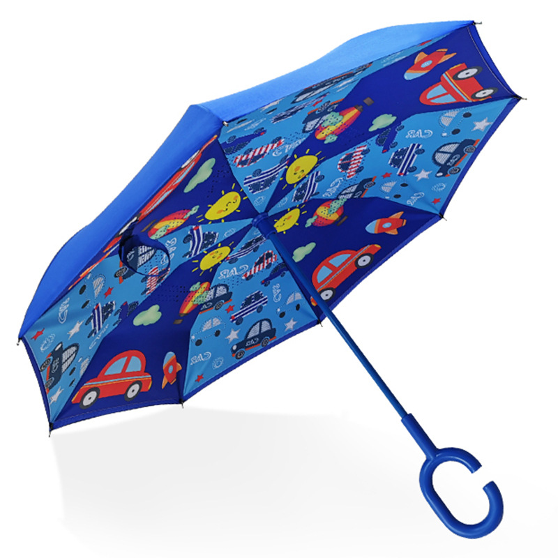 재고 도매 어린이 리버스 우산 귀여운 학생 더블 레이어 자동차 리버스 우산 무료 만화 햇볕이 잘 드는 우산스토어 가기