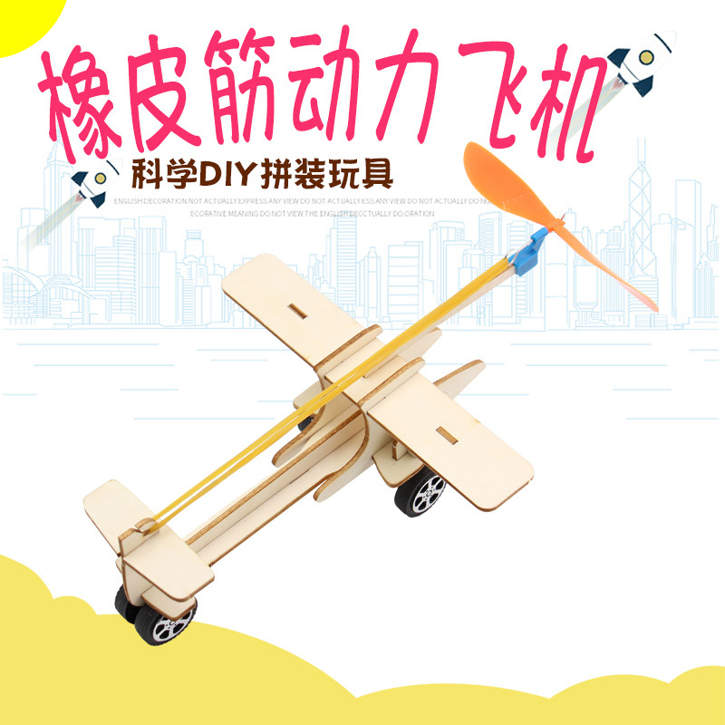 DIY 고무 밴드 파워 카 슬라이딩 항공기 인기 과학 교육 과학 실험 장비 수제 발명 작은 생산스토어 가기