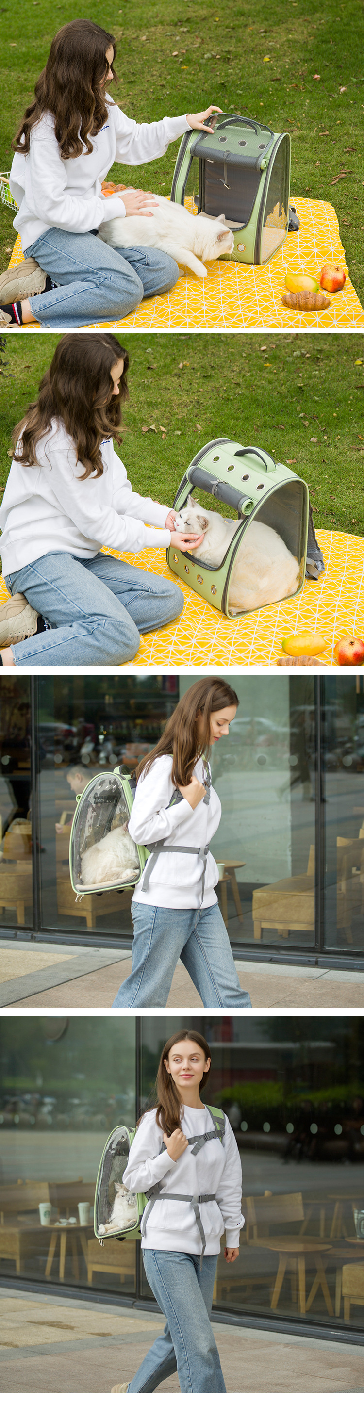 도매용 고양이 백팩, 파노라마 애완동물 백팩, PVC 고양이 가방, 통기성 좋은 휴대용 애완동물 가방스토어 가기