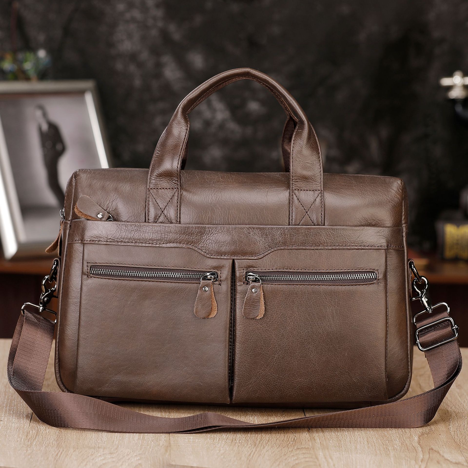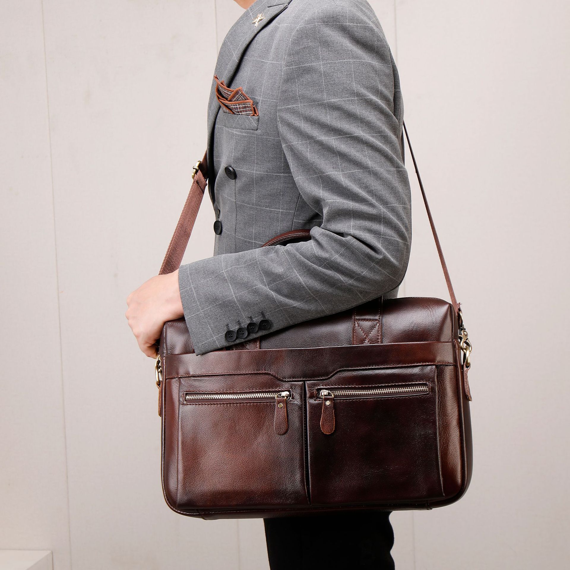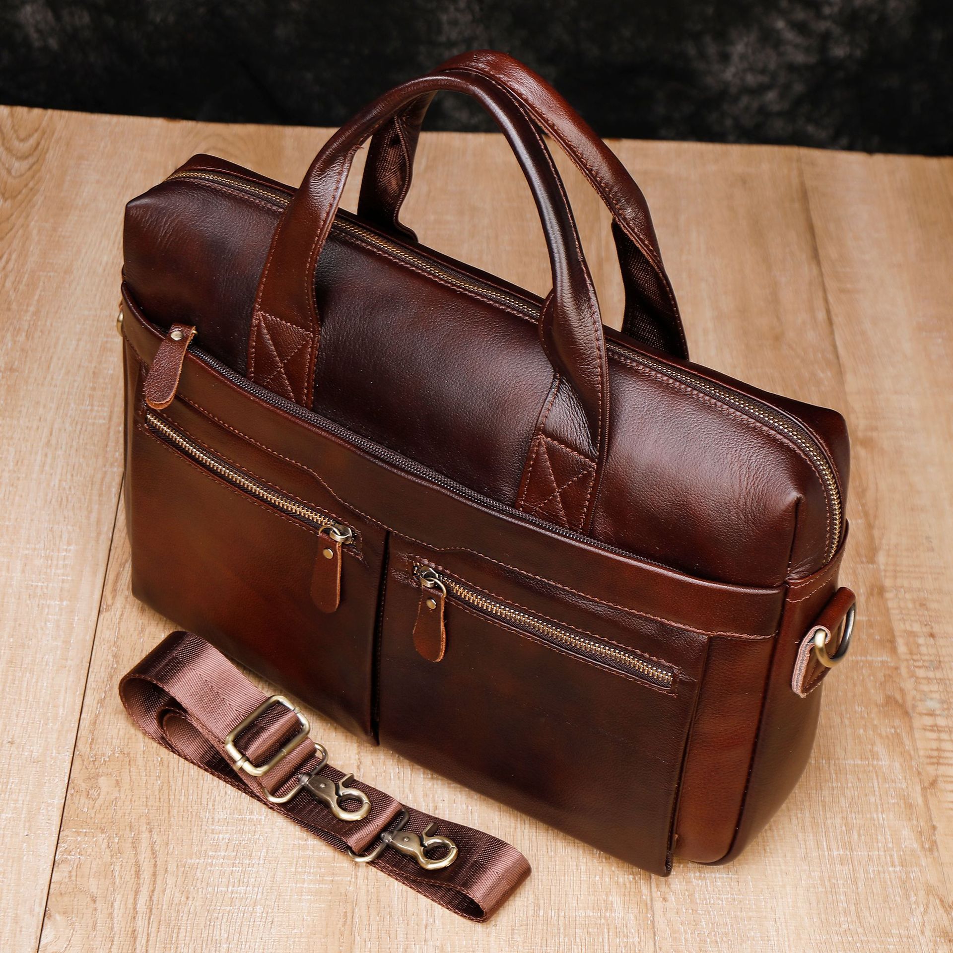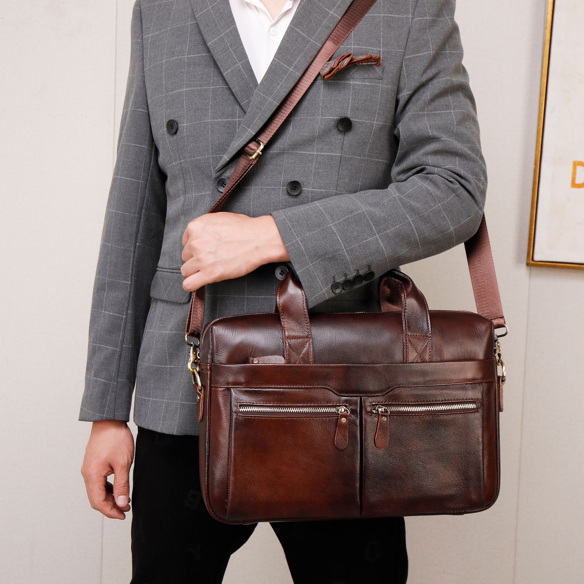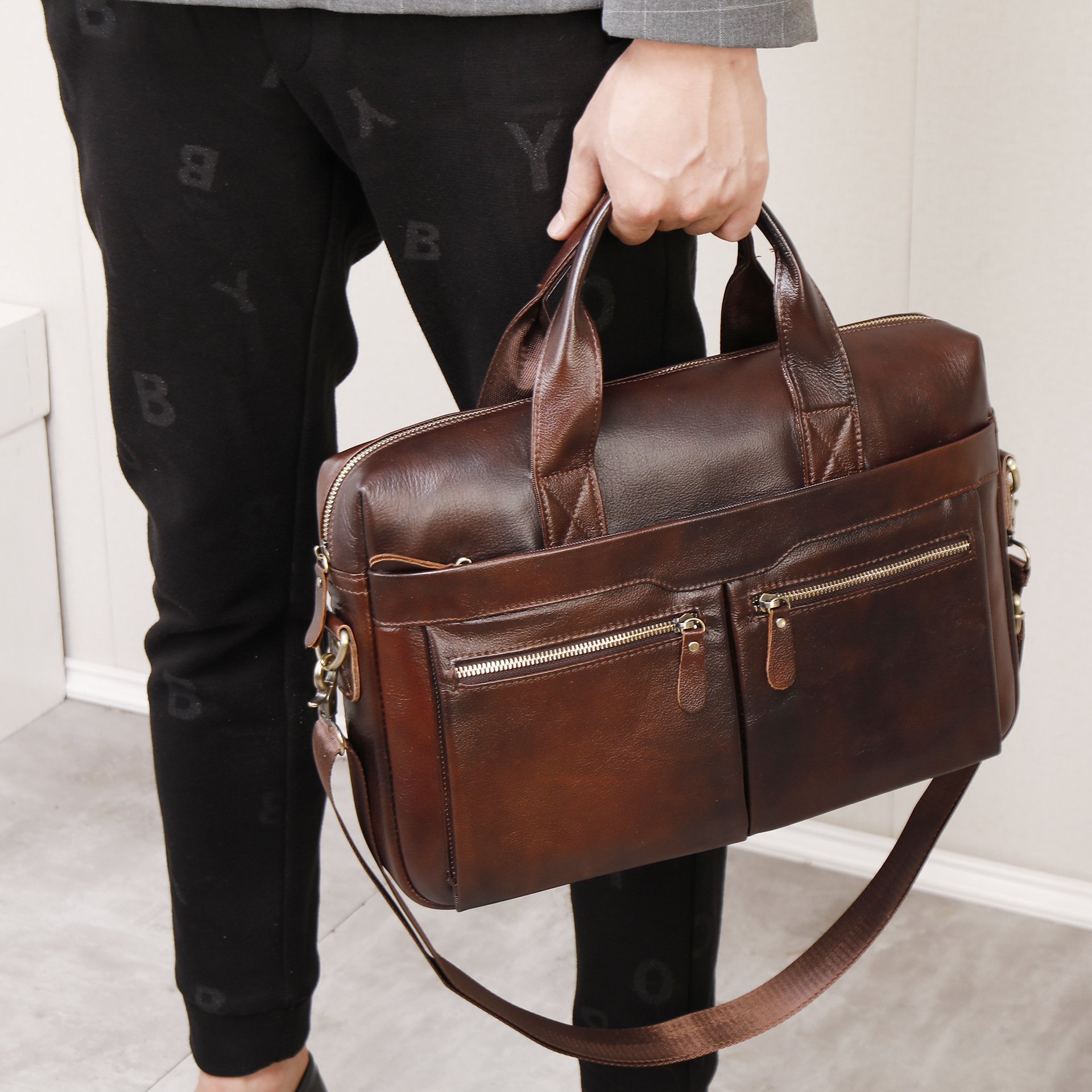 탑 레이어 소가죽 비즈니스 서류 가방 숄더 크로스바디 남성 가방 대용량 유행 캐주얼 노트북 핸드백스토어 가기
