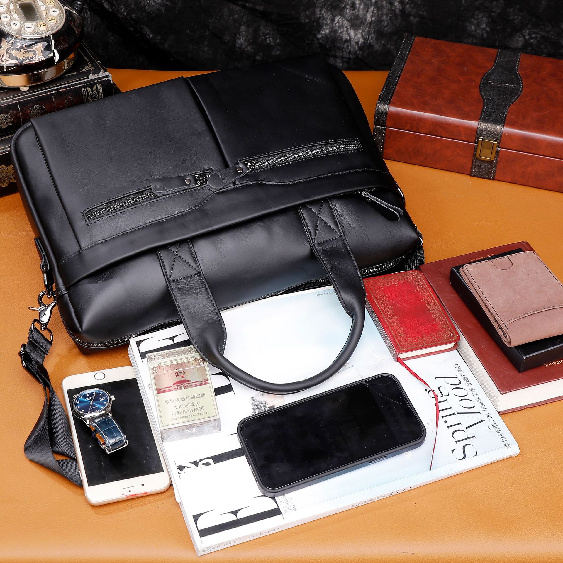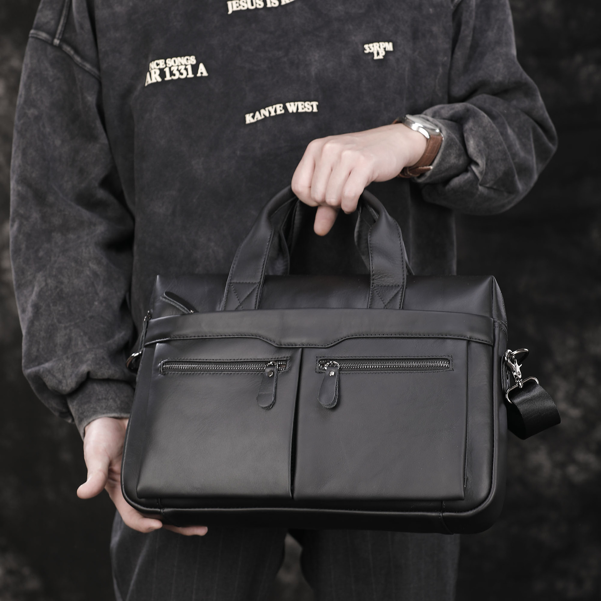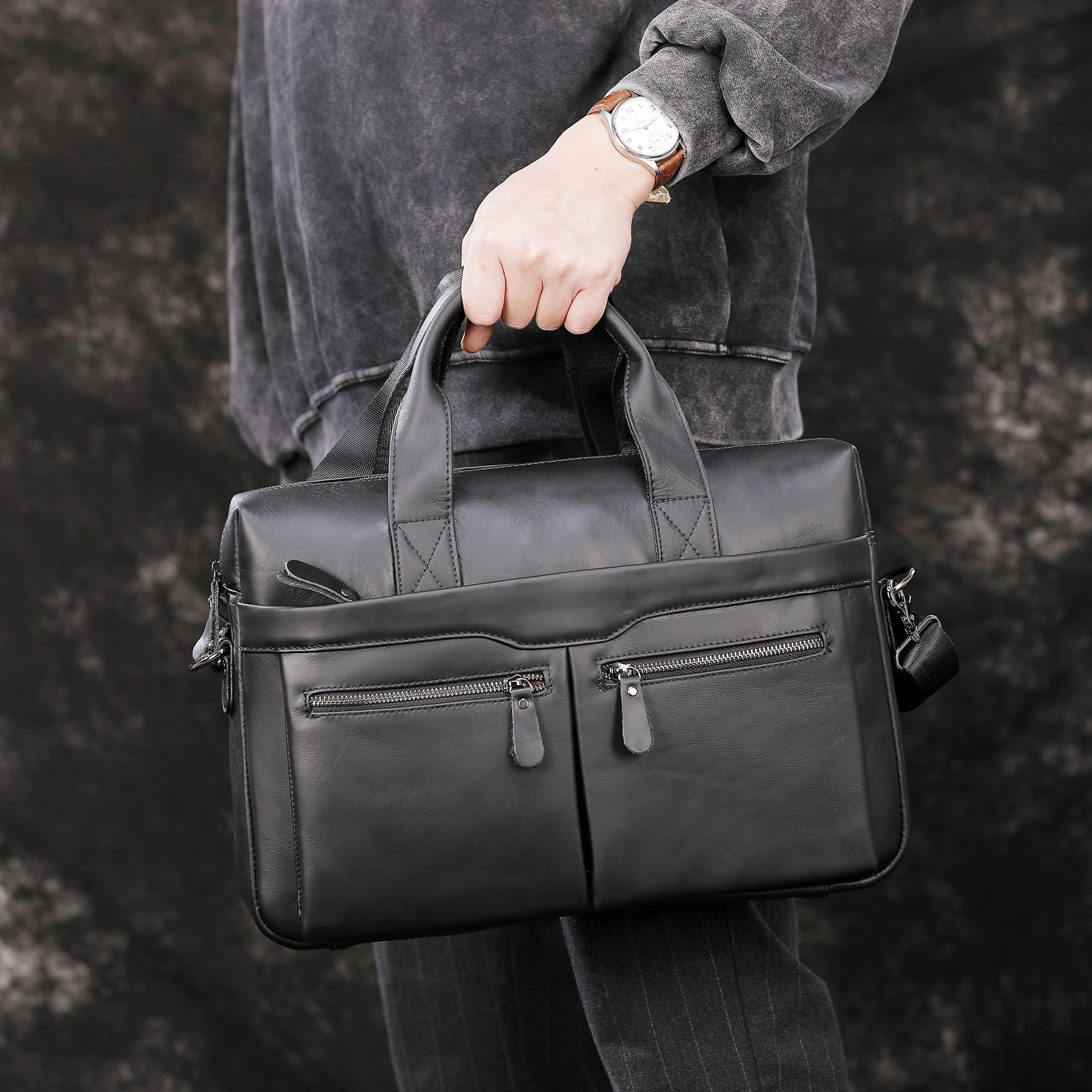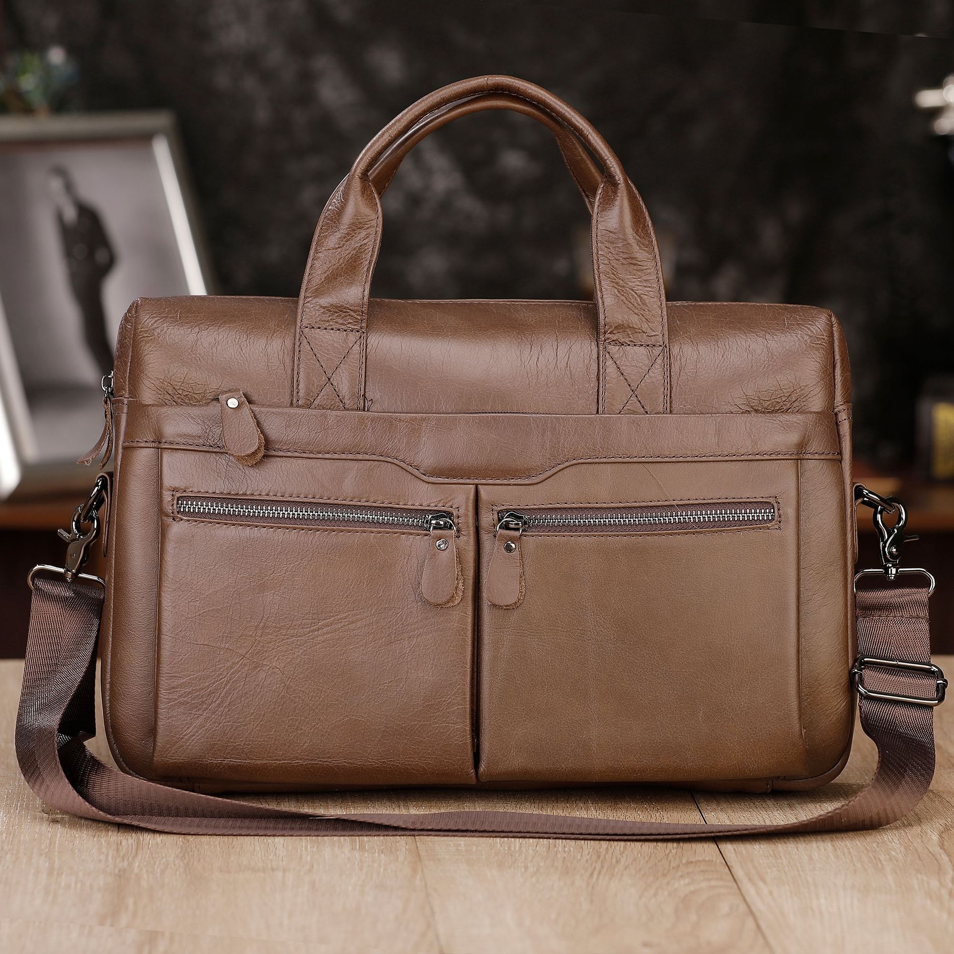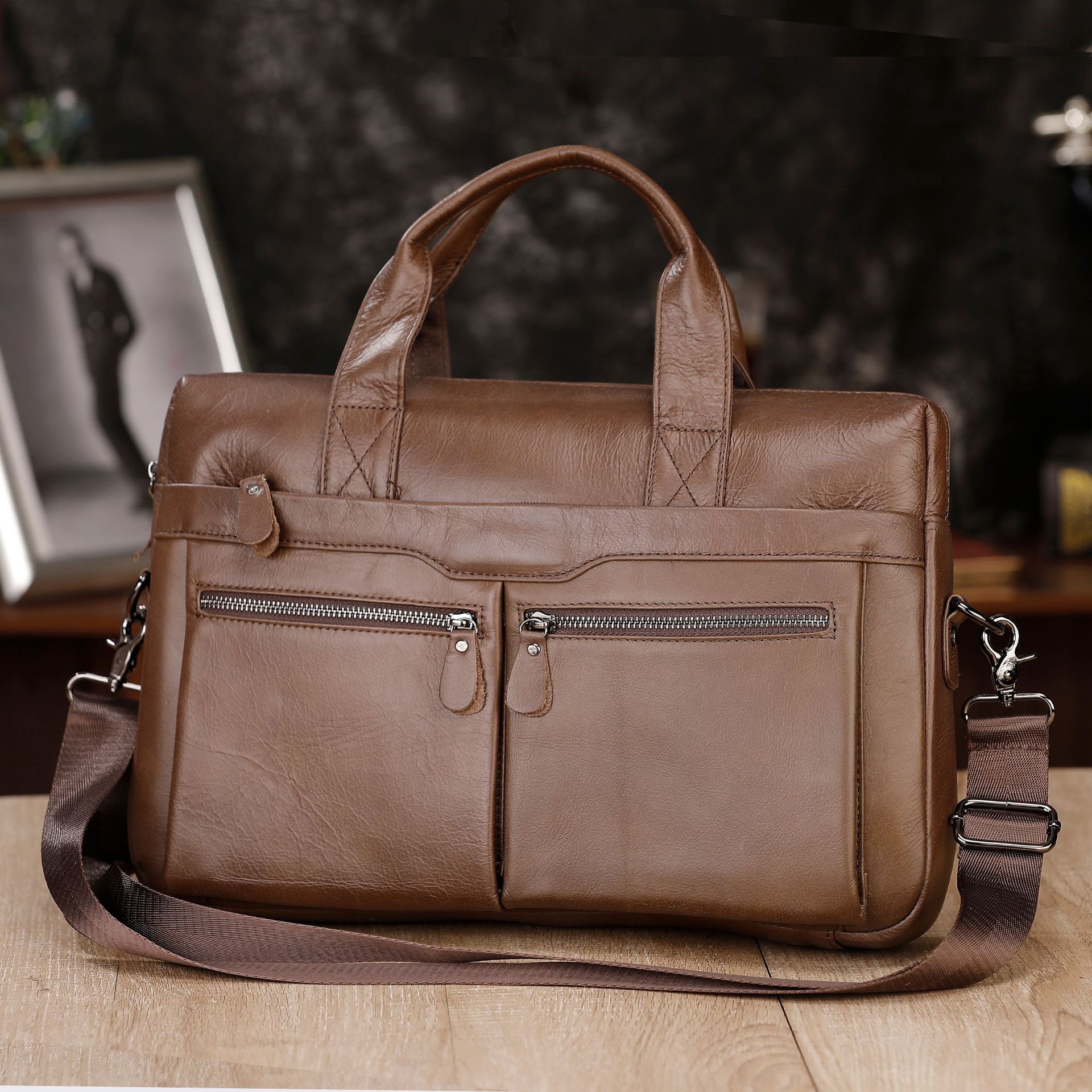 탑 레이어 소가죽 비즈니스 서류 가방 숄더 크로스바디 남성 가방 대용량 유행 캐주얼 노트북 핸드백스토어 가기