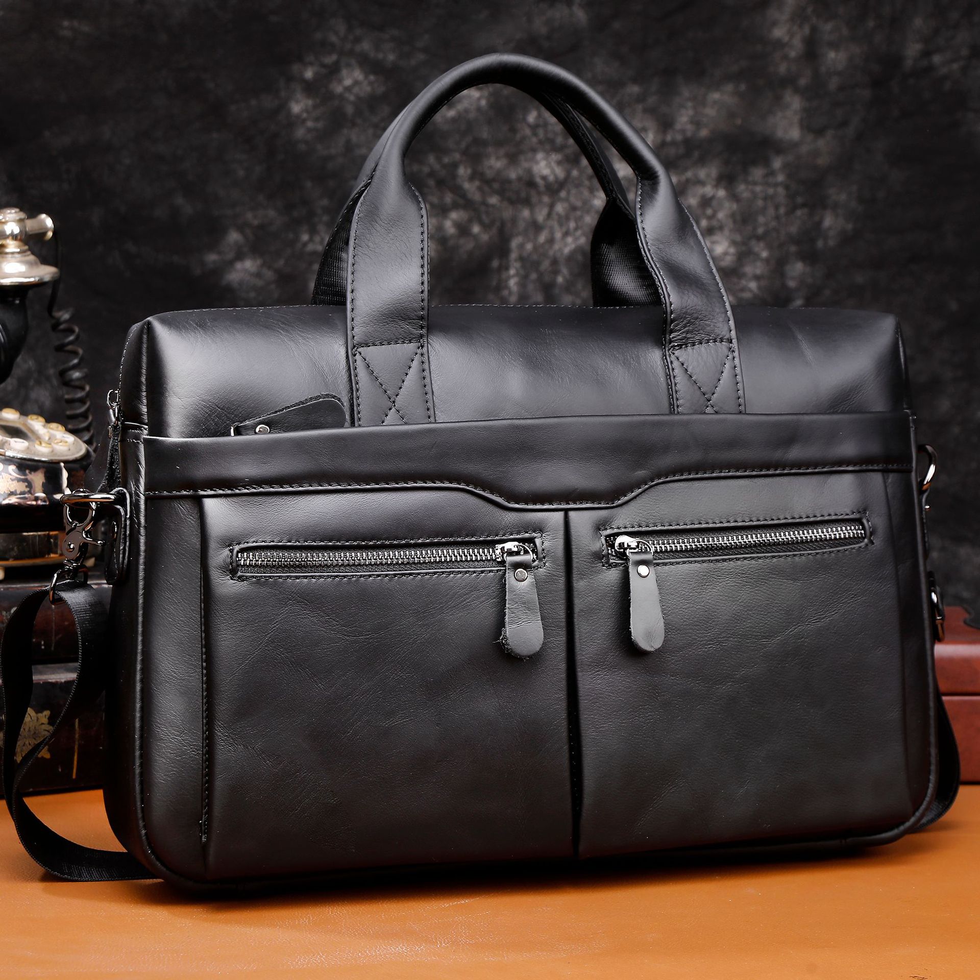 탑 레이어 소가죽 비즈니스 서류 가방 숄더 크로스바디 남성 가방 대용량 유행 캐주얼 노트북 핸드백
