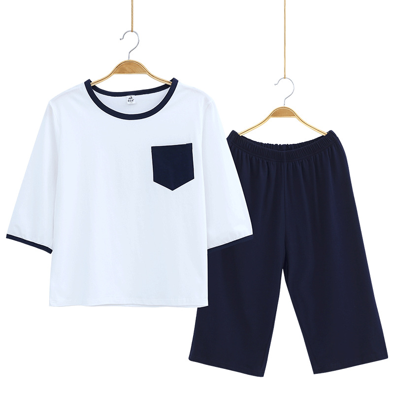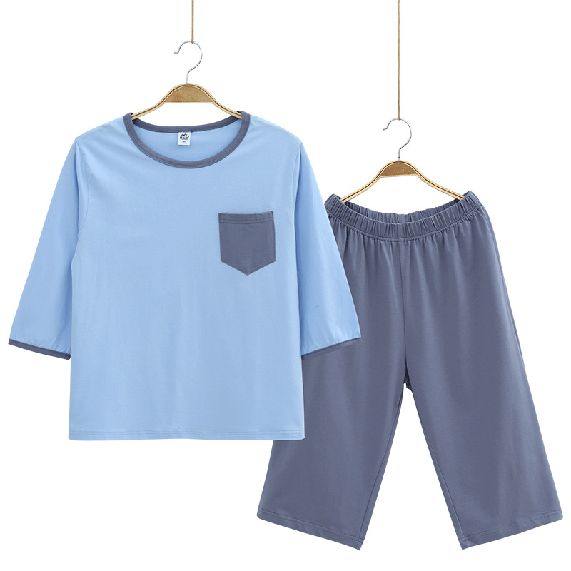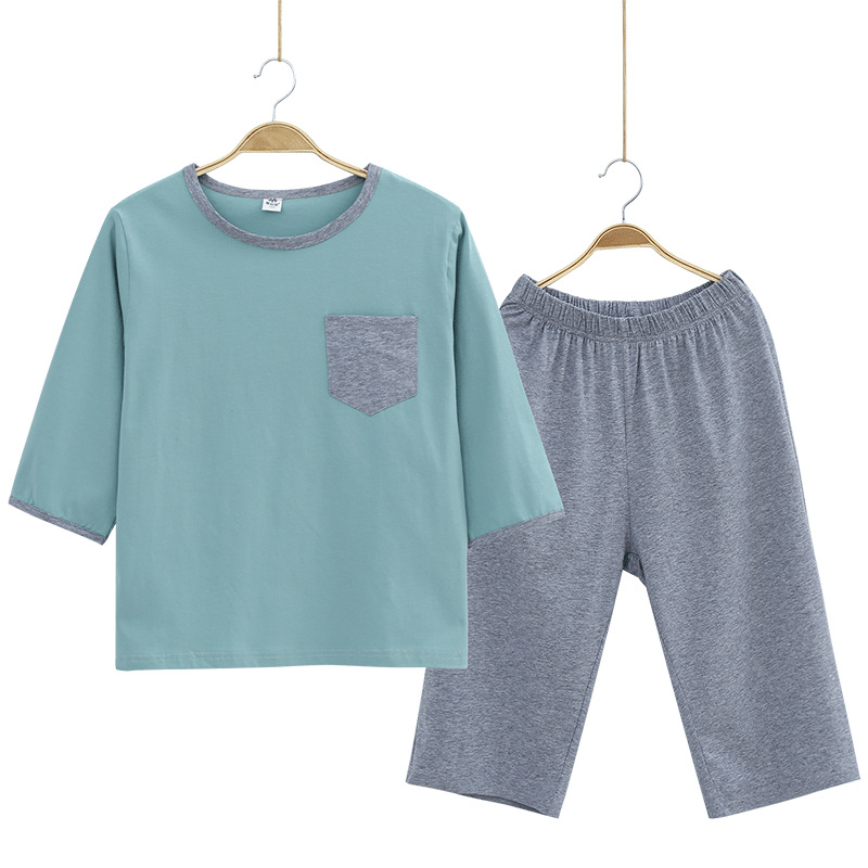 뚱뚱한 소년 가정 옷 잠옷 세트 여름 얇은 얼음 도자기 면 단색 중간 및 큰 어린이 여름 옷 느슨한 플러스 지방