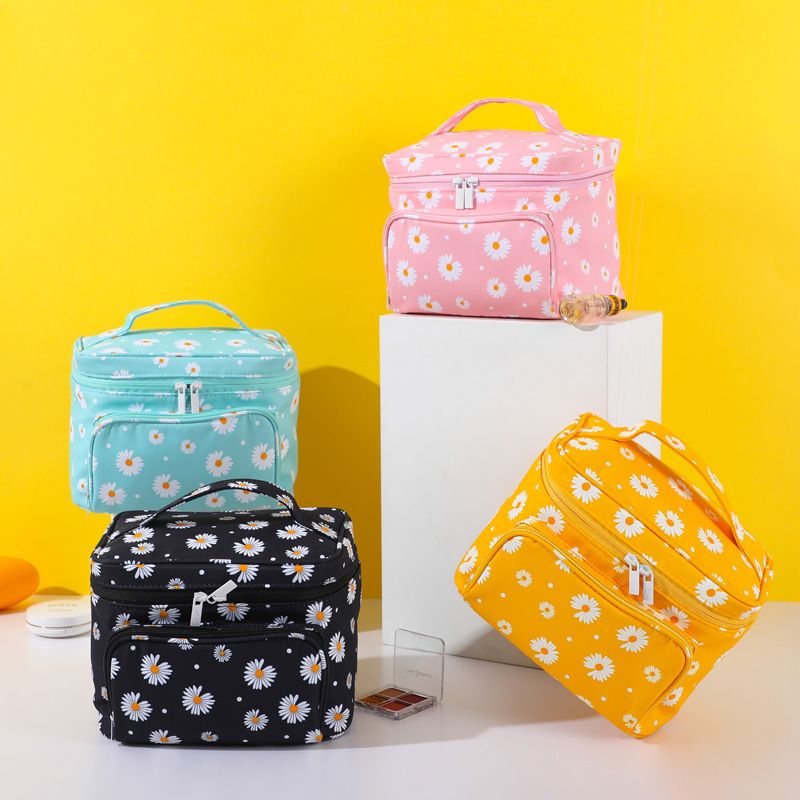 2020 새로운 한국 스타일 데이지 인쇄 보관 가방 일반 색상 대용량 휴대용 세면도구 가방 여성 화장품 가방