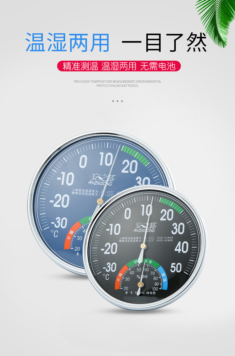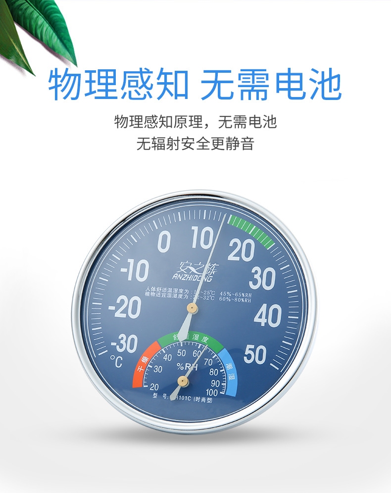Anzhidong 실내 고정밀 101C 온도 습도계 대형 글꼴 포인터 기계적 온도 및 습도 측정기