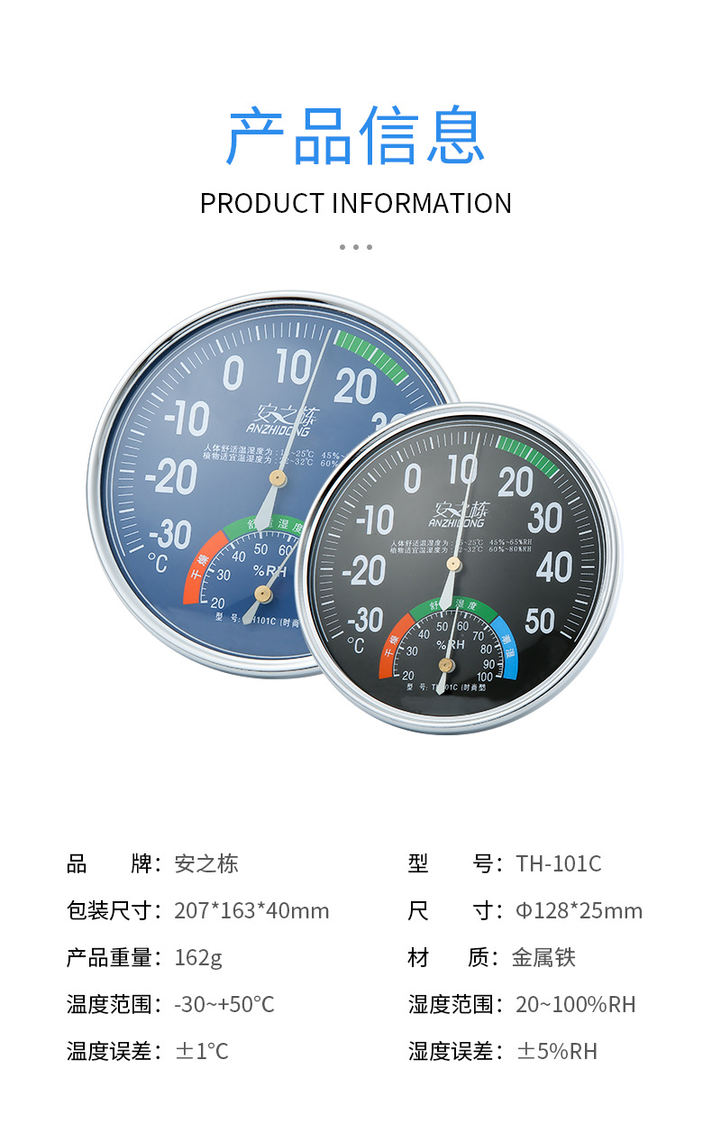 Anzhidong 실내 고정밀 101C 온도 습도계 대형 글꼴 포인터 기계적 온도 및 습도 측정기스토어 가기