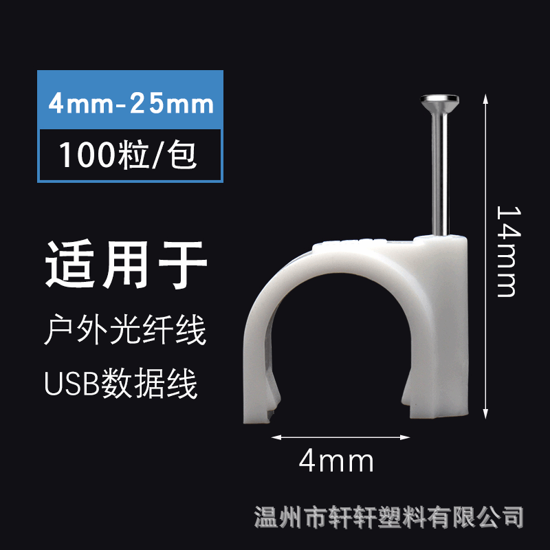 스틸 네일 라인 카드 4-50mm 사각 원형 플라스틱 나일론 버클 전화 네트워크 케이블 고정 네일 라인 클립