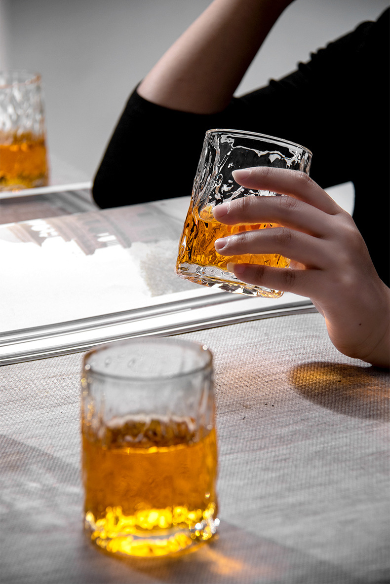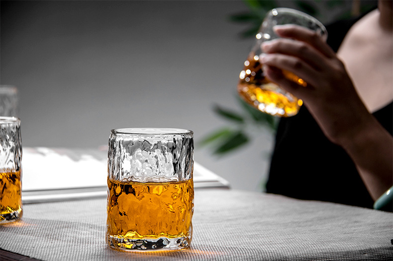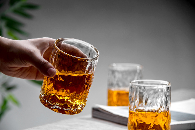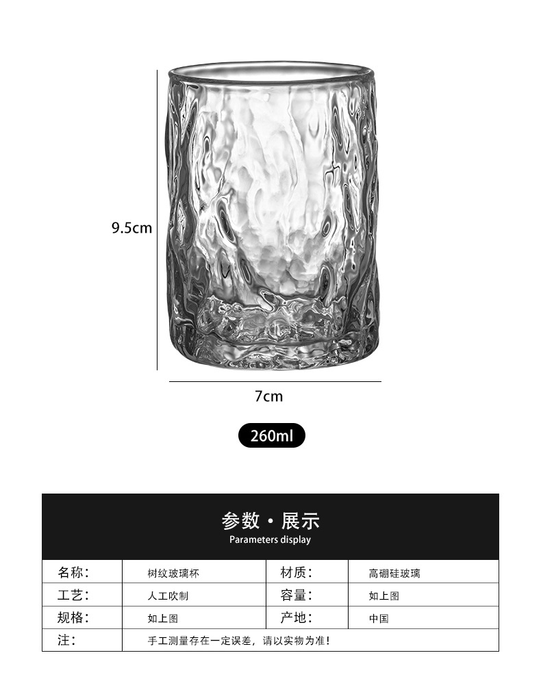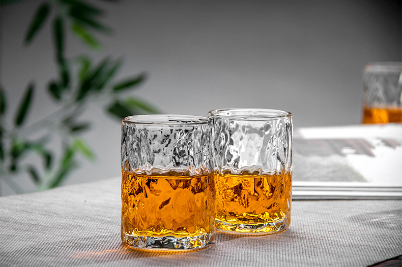 창조적 인 맥주 머그 나무 껍질 패턴 유리 맥주 머그 일본 망치 패턴 크리스탈 유리 위스키 와인 머그