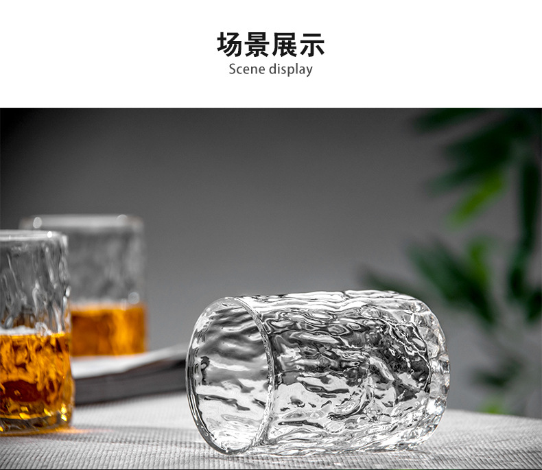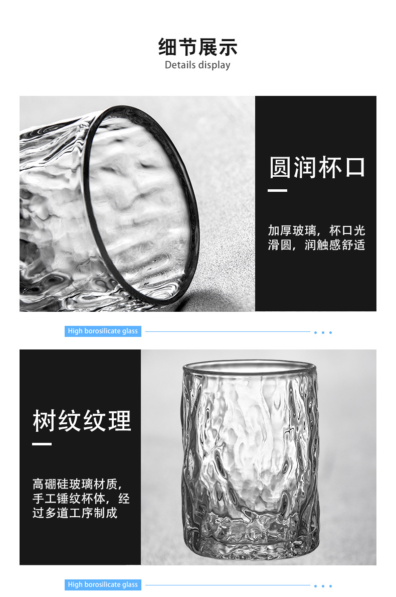 창조적 인 맥주 머그 나무 껍질 패턴 유리 맥주 머그 일본 망치 패턴 크리스탈 유리 위스키 와인 머그스토어 가기