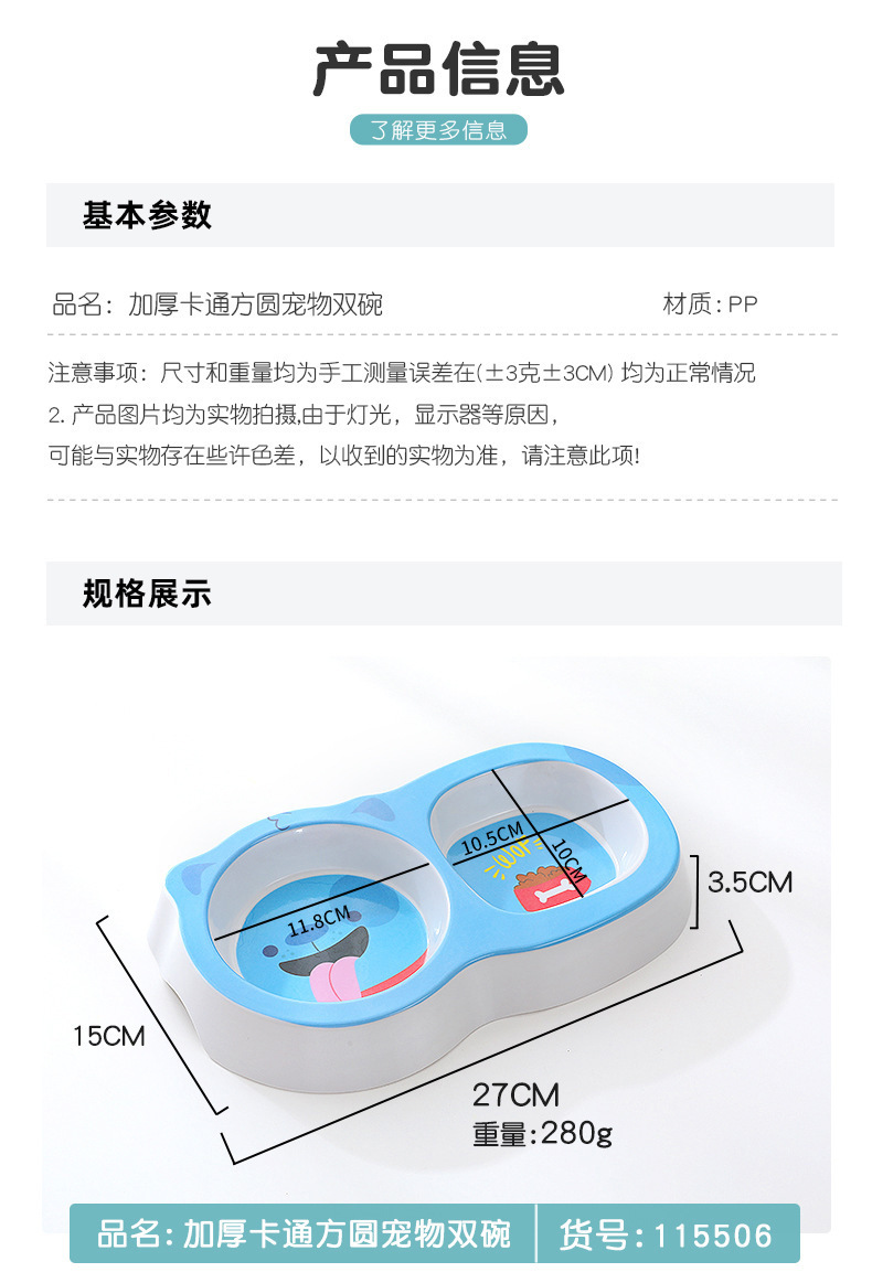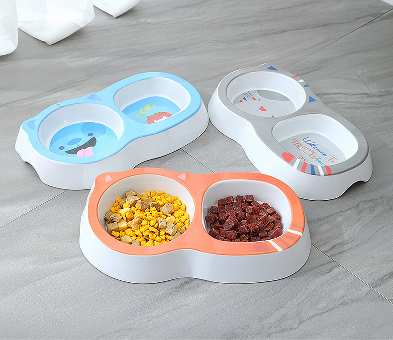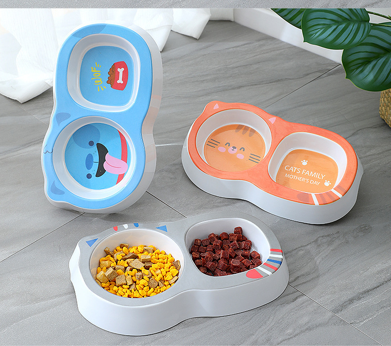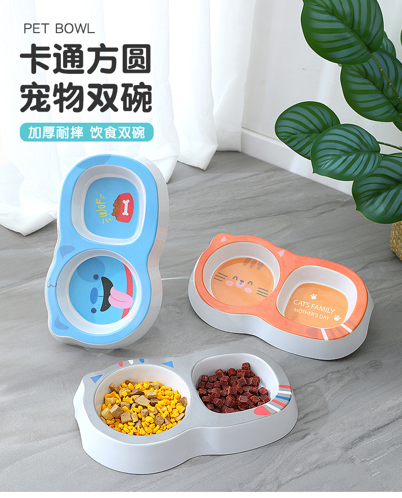 애완 동물 더블 그릇 제조 업체 도매 만화 광장 라운드 두꺼운 멜라민 고양이 그릇 안티 검은 턱 미끄럼 방지 먹이 개 그릇
