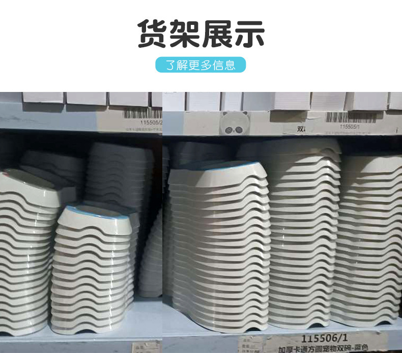 애완 동물 더블 그릇 제조 업체 도매 만화 광장 라운드 두꺼운 멜라민 고양이 그릇 안티 검은 턱 미끄럼 방지 먹이 개 그릇스토어 가기