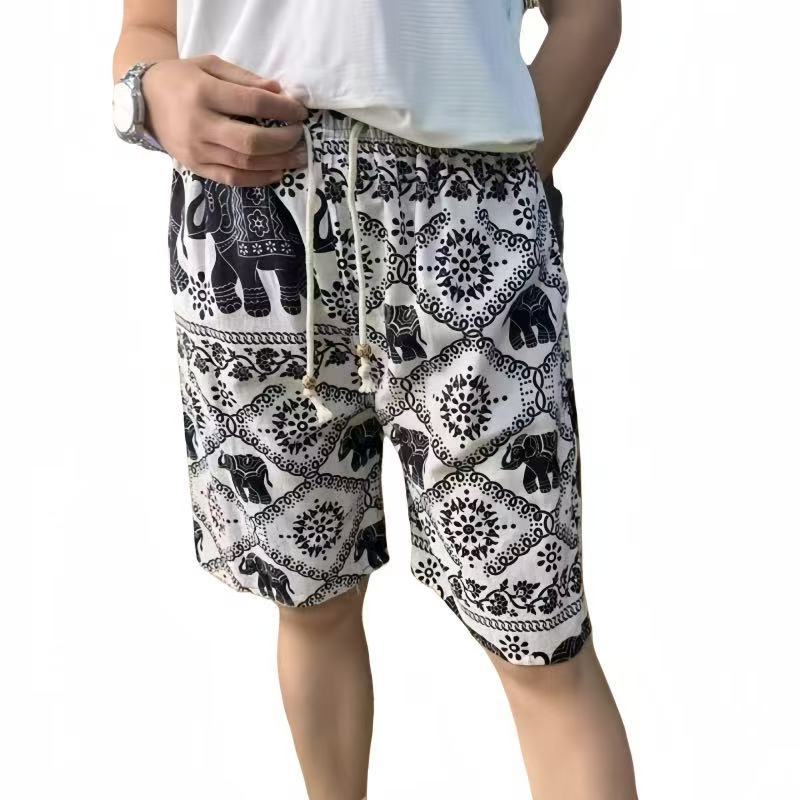여름 남성 해변 바지 캐주얼 스포츠 반바지 남성 코끼리 프린트 5부 바지 면 및 린넨 속건성 래프팅 대형 바지스토어 가기