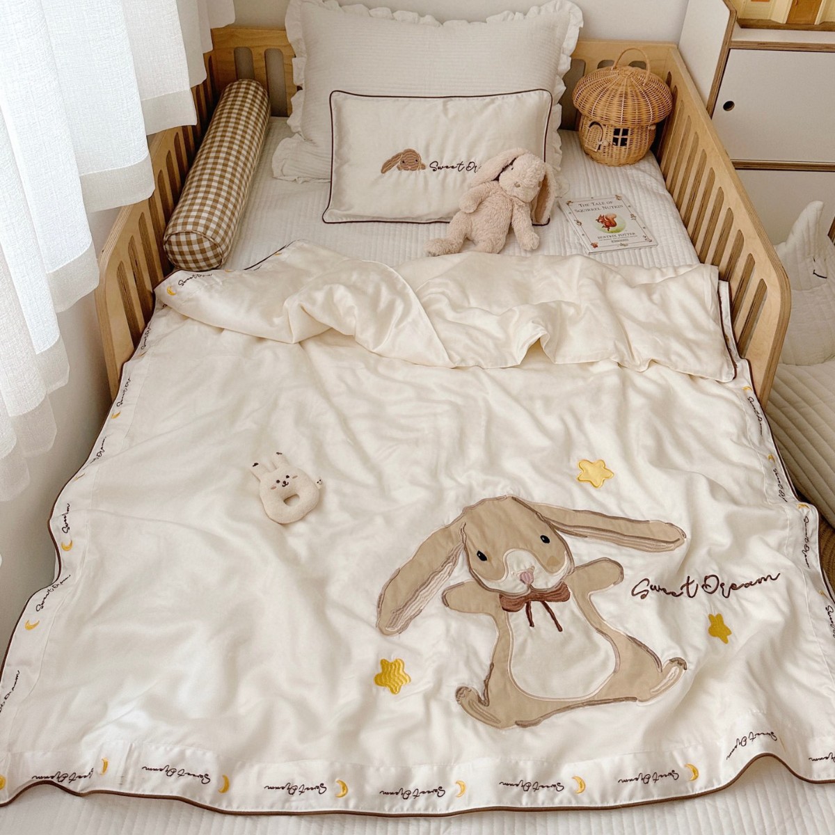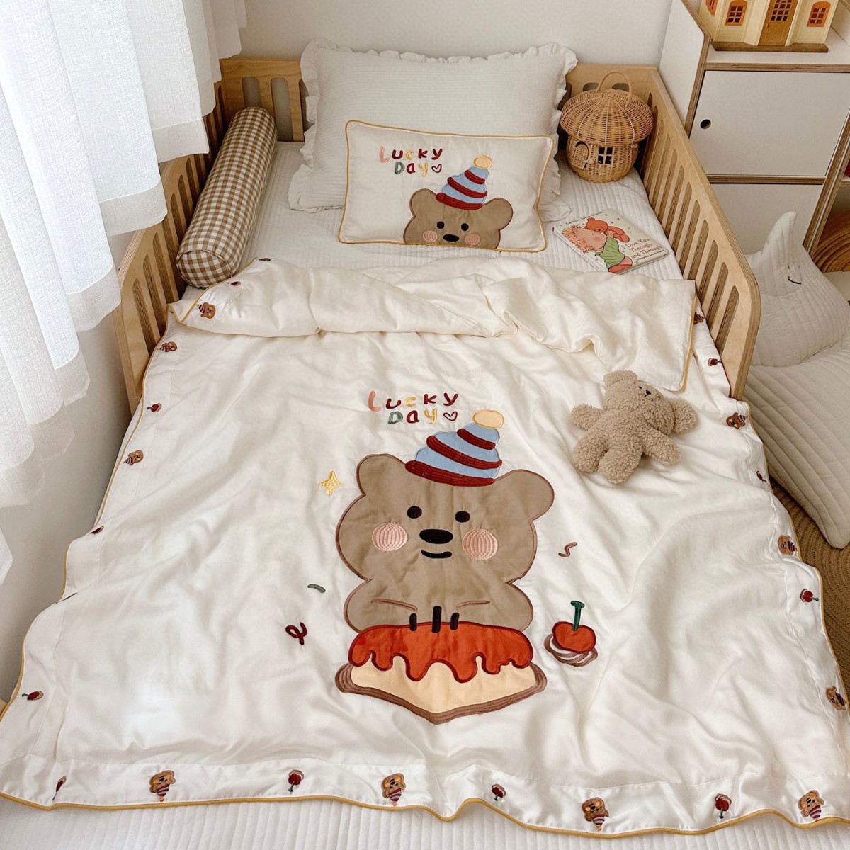여름 60 텐셀 아기 실크 퀼트 여름 쿨 퀼트 만화 자수 아기 퀼트 커버